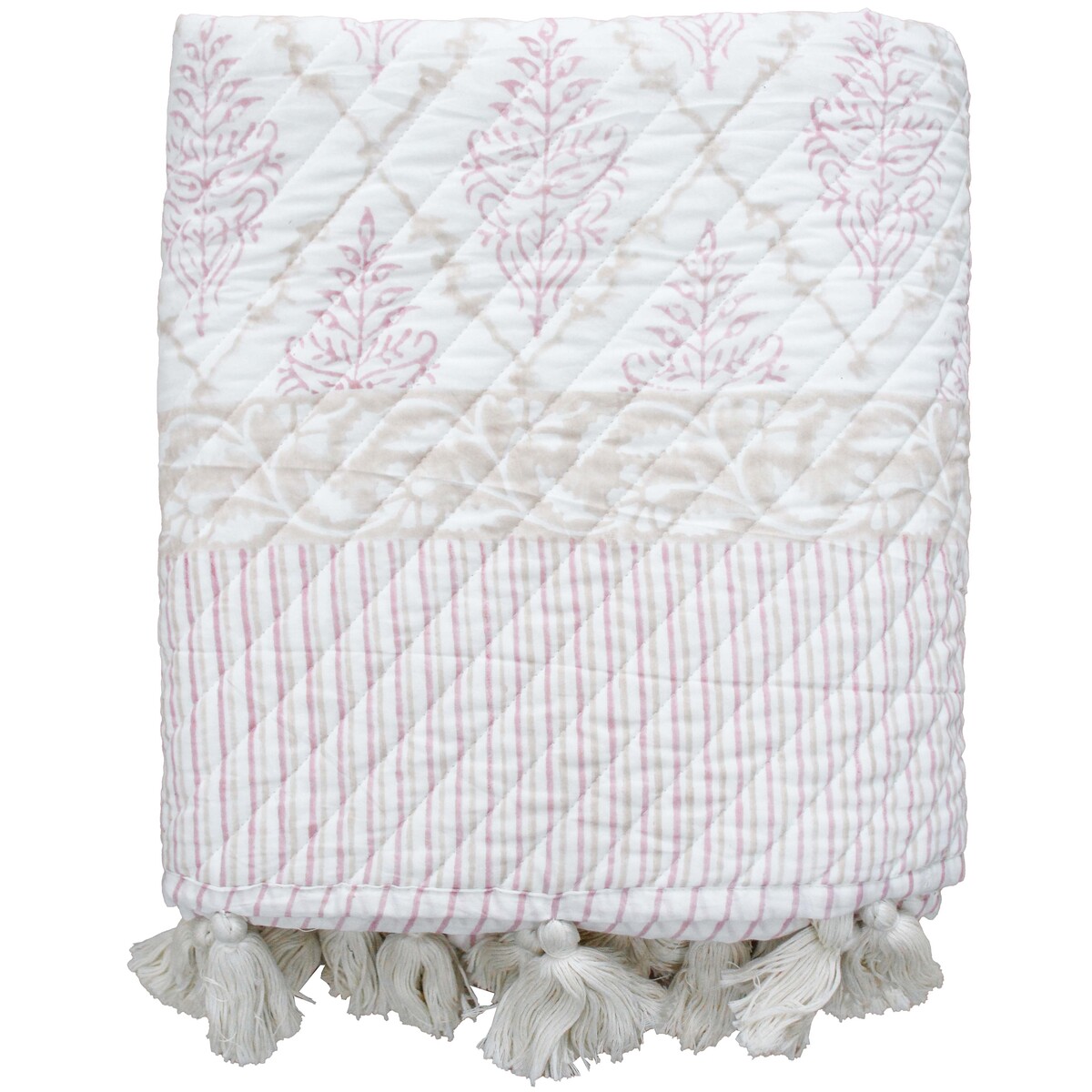 This throw has got that fresh, just-picked vibe with raspberry and cider tones layered across a soft cotton voile. There's something about the quilted finish and those big cream tassels that gives it a comfy, inviting feel - and at 130x150cm, it's the perfect size for draping across beds or sofas. We think this one's set to fly off shelves for anyone after a pop of colour that's still subtle and versatile.