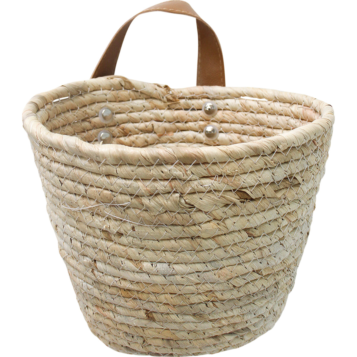 The Tidy Me Basket Small is possesses an enduring appeal with its exemplary design which gives insight into why people have continually loved and used basket over thousands of years. This particular artful piece is made from maize straw which is skilfully woven for that purposeful use. It offers customers two placement options: they could either place it on any flat surface of their choice, or they could simply hang it up using the provided artificial leather attached to one side of the basket.