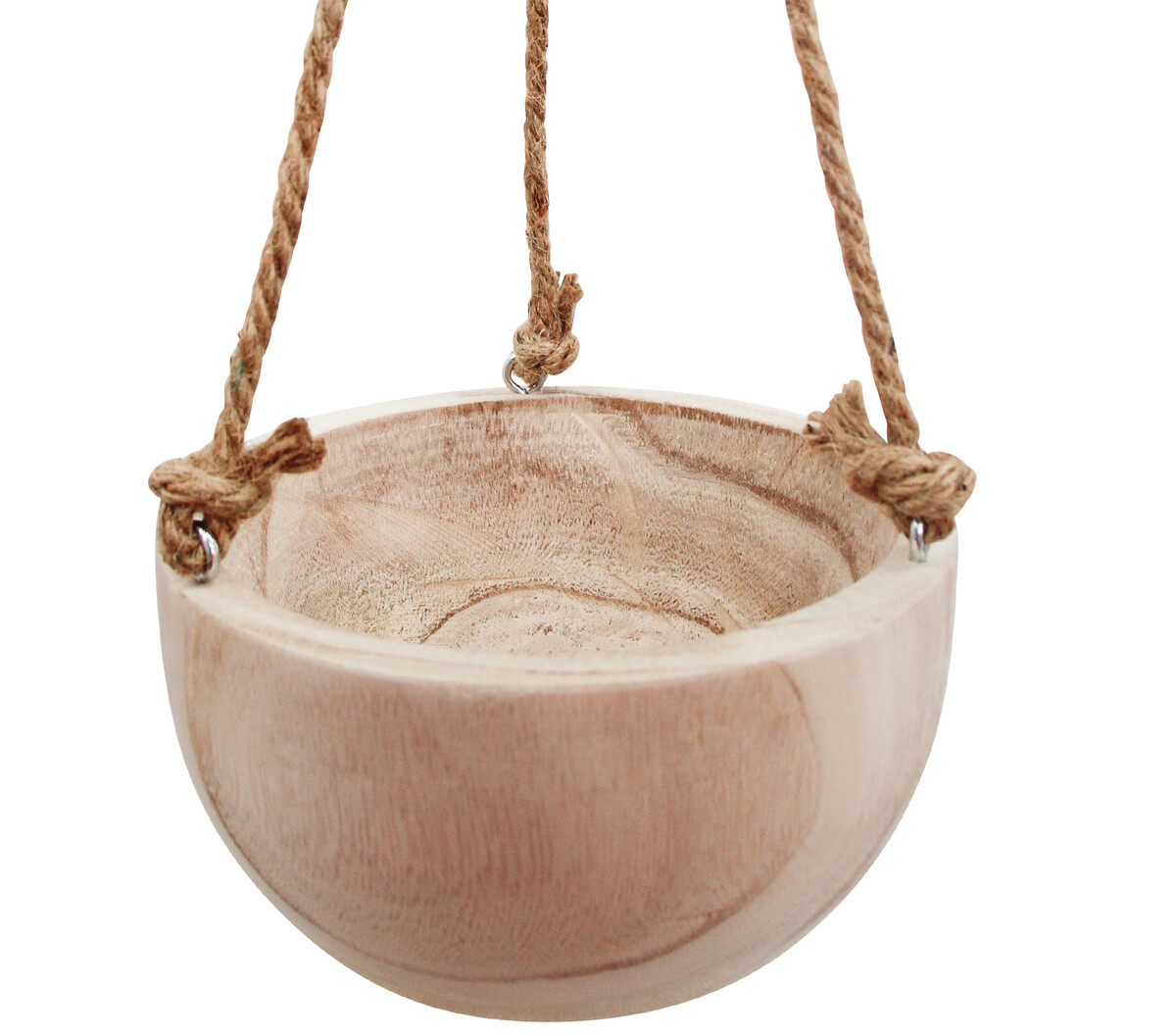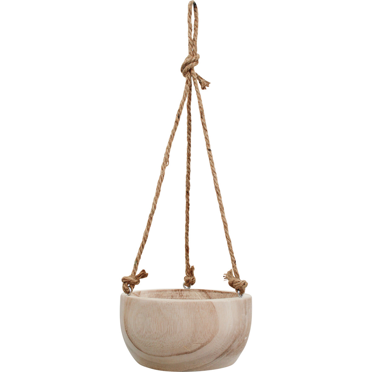Attached to the three metallic rings which are evenly spaced apart from one another atop this Timber Planter Hang Med Nat are three twine ropes for easy hanging option. The natural, twine made ropes are strong enough to support the weight of the soil and whatever plant would be grown in it. The option of hanging it up rather than placing it on floors, tables and other flat surfaces ensures that customers can optimize their space usage while still getting the ornamental benefits of plants.