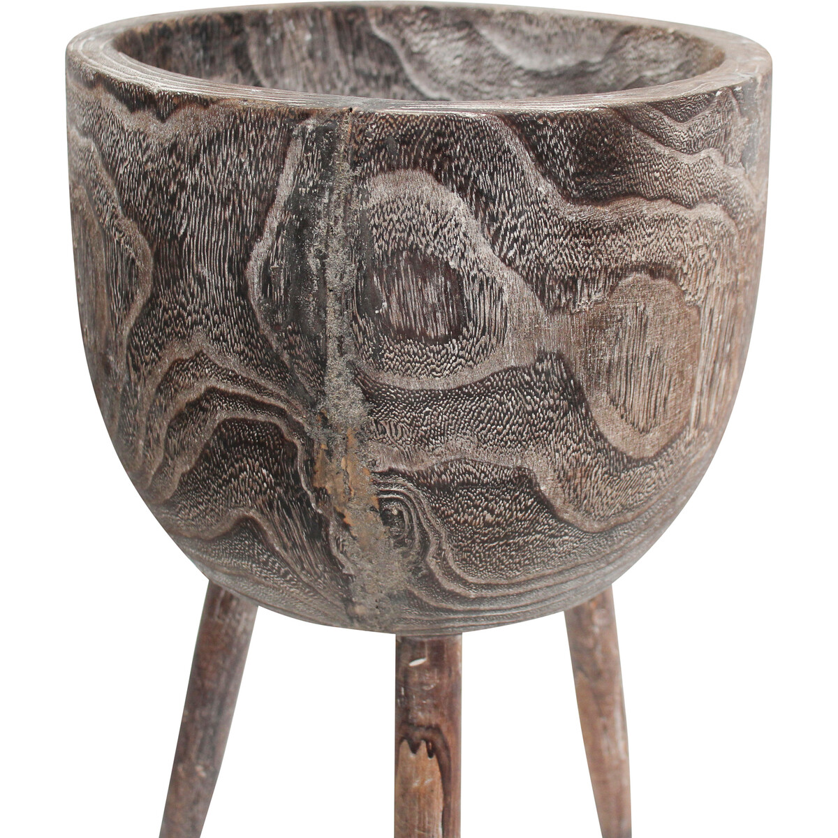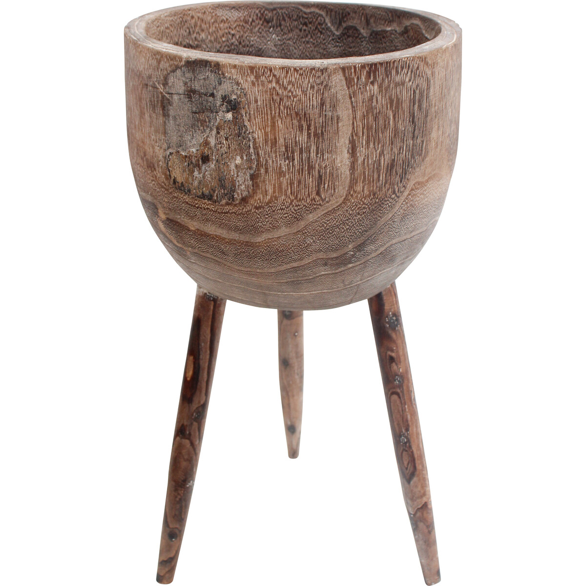 The Timber Planter Tall Lge has a distinctive design which would easily attract the attention of your customers wherever you chose to display it in your shop. This conspicuous and irresistible attraction is a product of the planter's choice of material and the easily blending choice of dark palette. The hewn round planter rests on top of three long legs which provide the planter and its content optimum support.