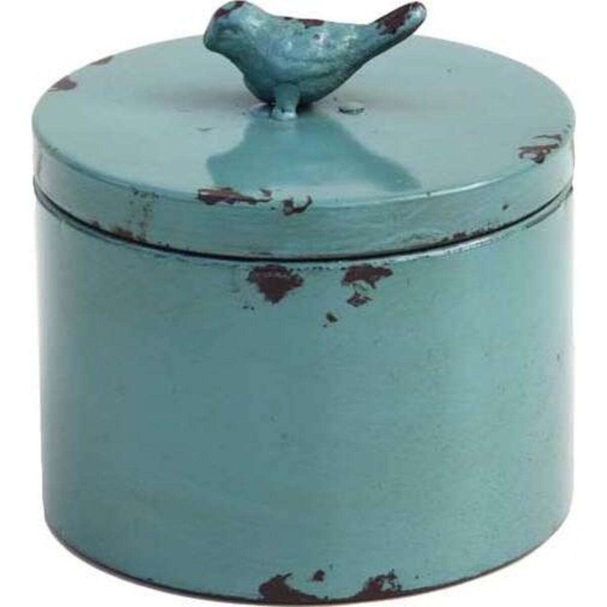 Apart from the fact that this blue tin box is great place to store ones tiny knick-knacks, the very design and the look of shabby vintage article is simply irresistibly quaint. The soft powder blue colour has a stamp of old world vintage look. Yet the box is completely devoid of any denting or serious chipping. The peeled off enamel in fact ordains it more class and charisma. A lovely feminine piece that will be loved by little girls to store their precious little trinkets. Would be equally cherished by ladies who like to add a certain amount of class to their desk or dresser. The neat little bird handle is dainty yet firmly welded into the top of the lid to make the opening easier and swifter. A definite find for those who like things to be organized and this tin could provide just the right kind of secure space for pins, buttons, little pieces of anything that needs to be kept safe.