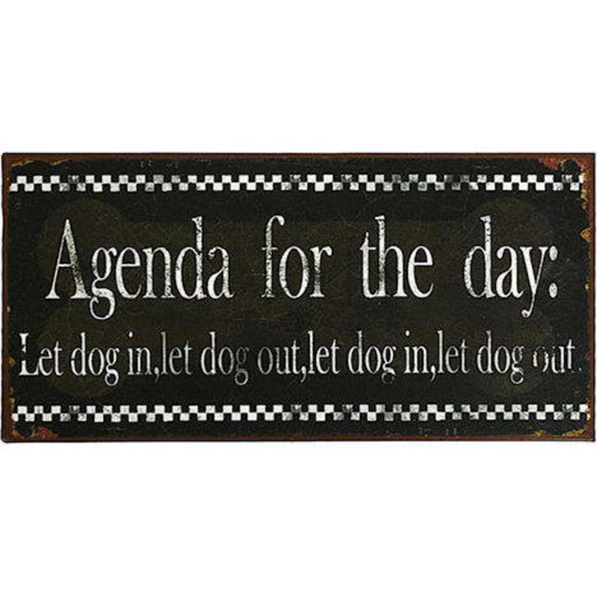 This Agenda For the Day Tin Sign reminds you of that. Every time you'll look at it, it'll remind you that there are days when doing nothing but letting the dog out, snuggling up together on the couch and watching movies all day isn't a waste of time, but a little bit of best friend boding and quiet time in the middle of a hectic and busy life. Your dog doesn't care how busy you are, all he knows is that he wants you there as often as possible.
