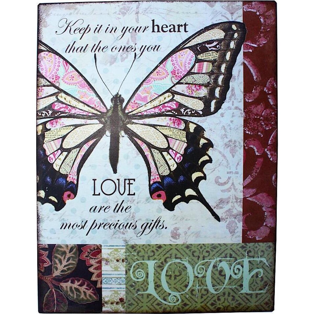 Discover the enchanting allure of the Tin Sign - Butterfly Love, a charming addition to any home or giftware collection. Measuring a versatile 24x32 cm, this piece captures the eye with its stunning butterfly motif and heartfelt message, "Keep it in your heart that the ones you LOVE are the most precious gifts." The rich, intricate patterns and a harmonious colour palette serve as a beautiful backdrop, making it a versatile fit for a myriad of decor styles, from bohemian to classic. Crafted with durability in mind, this tin sign seamlessly blends longevity with style. Its unique design promises to evoke emotions and add a touch of whimsy to any living space, be it a cozy reading nook or a dynamic office environment. It stands out as a thoughtful gift, resonating well with consumers who seek items that speak to the heart while decorating their space. The Tin Sign - Butterfly Love is not just a decor item; it's a statement piece that celebrates love and adds an artistic flair to your customers' homes. This delightful sign is set to become a cherished piece that can adorn walls or rest on shelves, bringing warmth and personality to any setting. Invite your customers to transform their surroundings with this exquisite and meaningful sign that will surely capture their hearts and become a bestseller in your store.