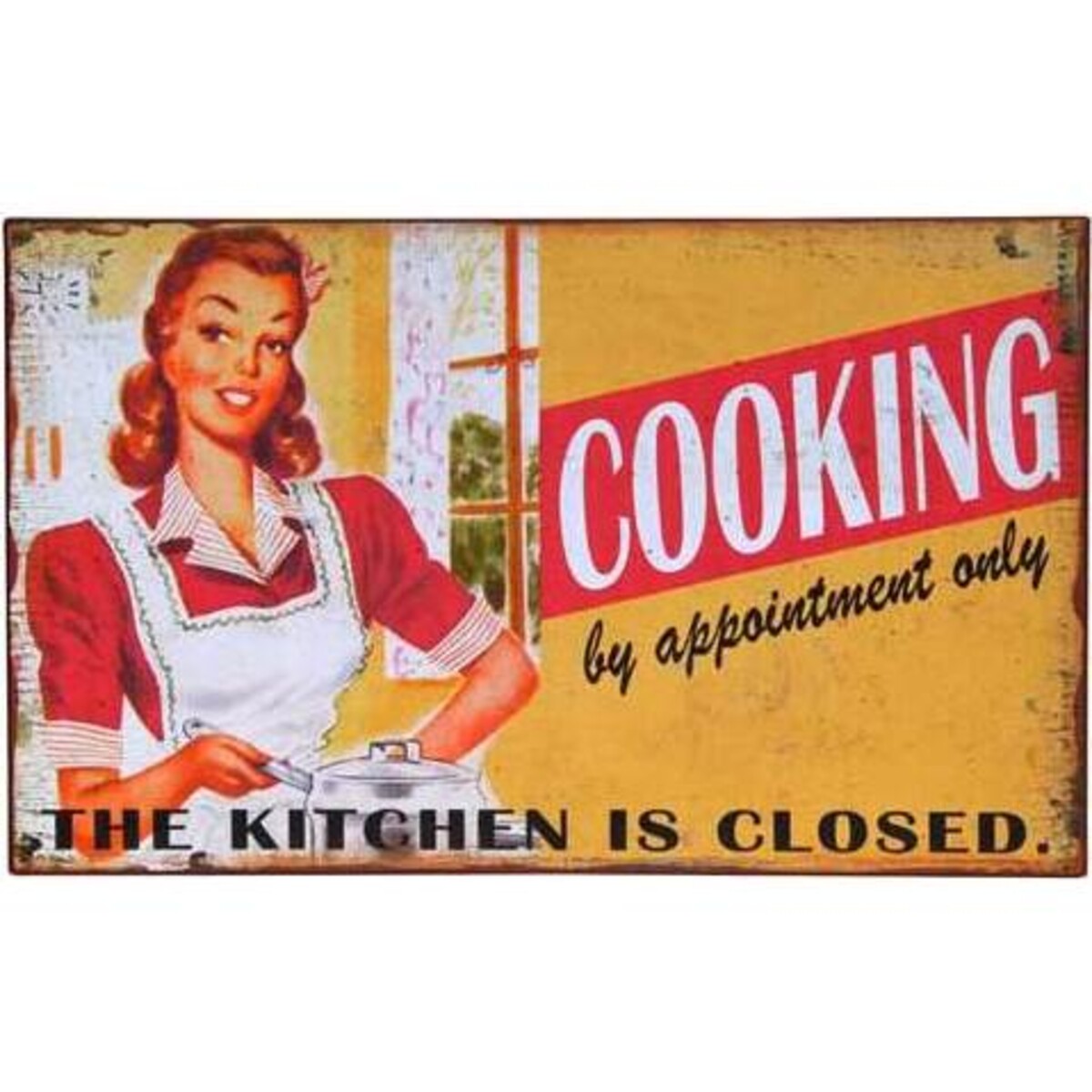 This vintage-inspired sign features a woman wearing an apron with the words "Cooking by appointment only. The kitchen is closed." It's a cheeky way to let everyone know that if they want something, they can either eat when you cook or they can make it themselves. While it's ideal for a kitchen that's decked out in vintage themed d_cor, it can still fit in perfectly with a kitchen designed in almost any style. You'll love seeing this piece of art on a daily basis, and you'll wonder how you went without it all this time.