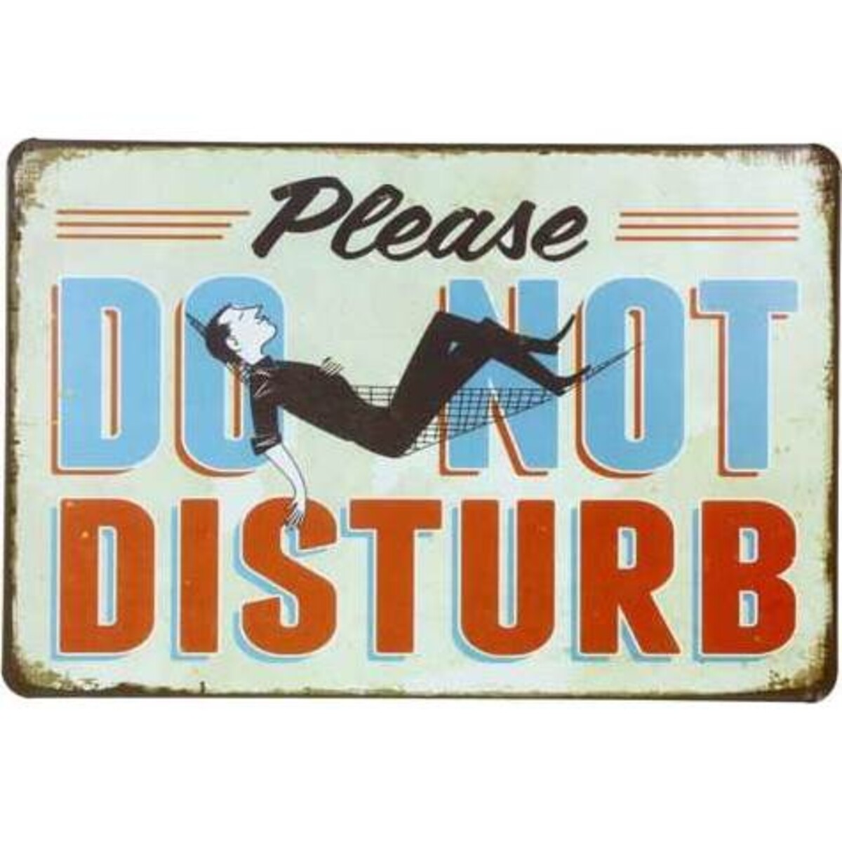 Tin Sign Do Not Disturb is a beautiful sign which features a mixture of colours, notably black, navy blue, red and white. The inscriptions éPlease Do Not Disturbé can be seen taking prominence, with the portrayal of a man at rest fixed at the centre - position. This product has dimensions of 30x20 cm and several of them may be fixed at a serene spot inside and around places of leisure and relaxation. These include beaches, massage parlours as well as near visitorés rooms. It is vital to have some rest time and again from exhaustive activities. This helps to renew oneés body and Tin Sign Do Not Disturb can help to fulfil this objective.