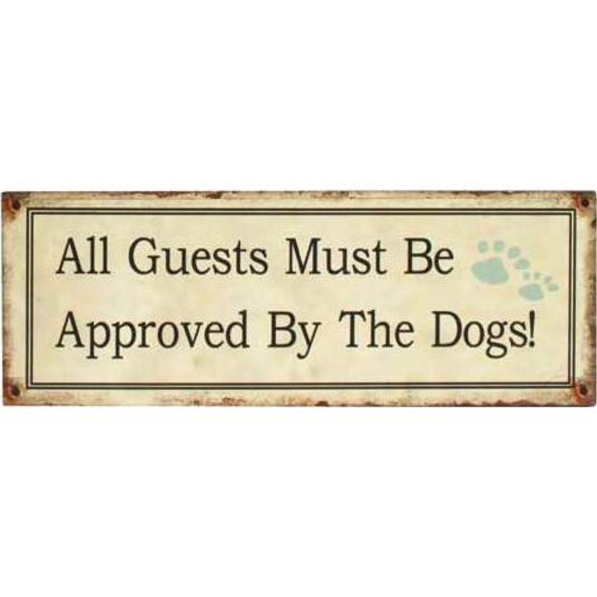 Introducing the Dog Guests Tin Sign from Lavida. This fantastic horizontal cream-coloured sign pays homage to your believe that the dog is always right when it comes to choosing who is a good judge of character. The sign features a brown border, aging around the edges to give it a vintage feel, a pale blue paw print, and the words, "All Guests Must Be Approved by the Dogs!" It's a cheeky little sign to keep for yourself or give as gifts to all your dog owner friends.