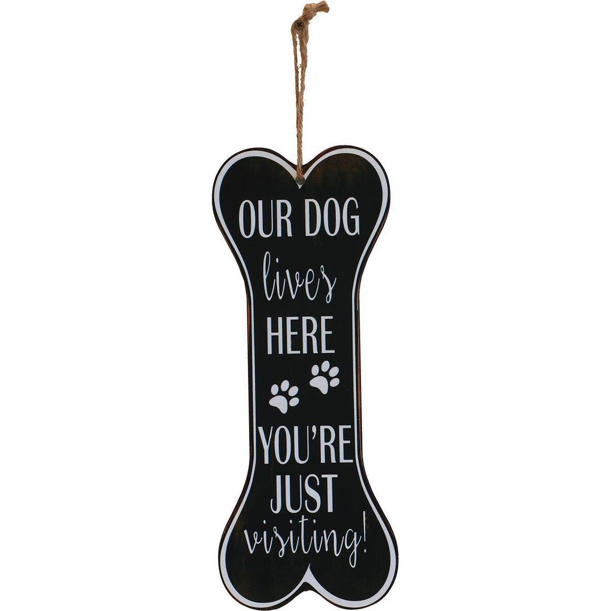A dog lover would understand the consternation that is always a part of the entertaining strangers at home who seldom understand how and why your home is not just yours but also your dog's. This sign board shaped like a dog bone makes the sentiment amply clear. When guests arrive most households have trouble explaining why the dog in the house is such an important member and not just another animal. Making its status amply clear is this avid sign that says it all - succinctly - Our Dog Lives Here, You are Just Visiting - simply meaning to say what you surely have understood, that while you reserve all right to ?visit' the real rights of ownership is with you and your dog. A sign bard that can be placed propped up against the wall, or simply placed on the wall, its height being 34.5 cm and its length about 14 cm, shaped like a bone, black in colour with a trim of white outline making the lettering coordinate perfectly with the writing. Here is another way of expressing love for your pooch!