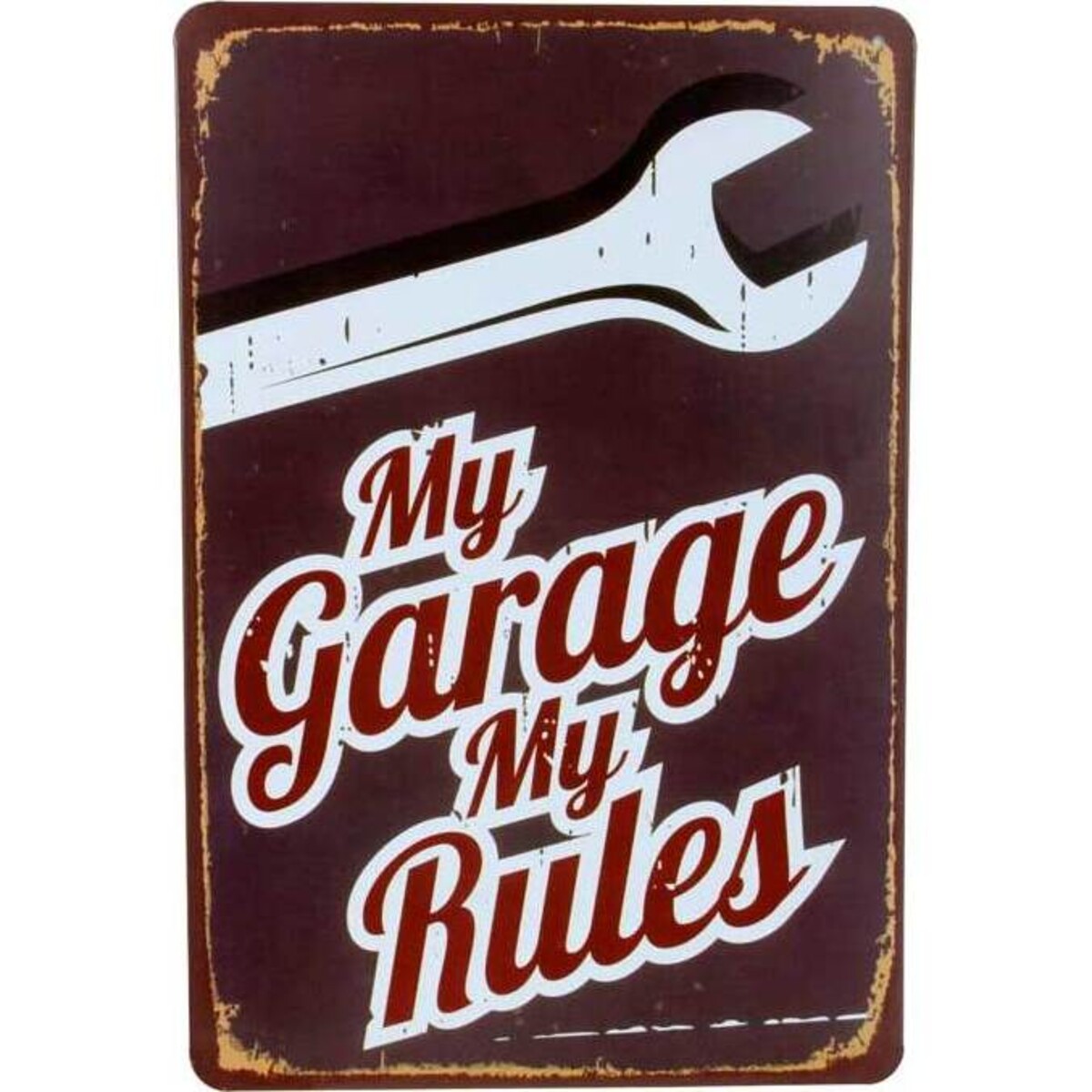 Tin Sign Garage My Rules is a sign constructed using tin, with measurements of 20x30 cm. The words ‘My Garage My Rules’ are written in maroon and outlined in white, with a spanner depicted just on top. Brown is utilized for the background, providing a good contrast with the theme colours employed for the sign. Tin Sign Garage My Rules can be a thoughtful product for homeowners to acquire and put up on the garage. The message it carries is expressed in clear manner, which wards off any unwanted acts from strangers.