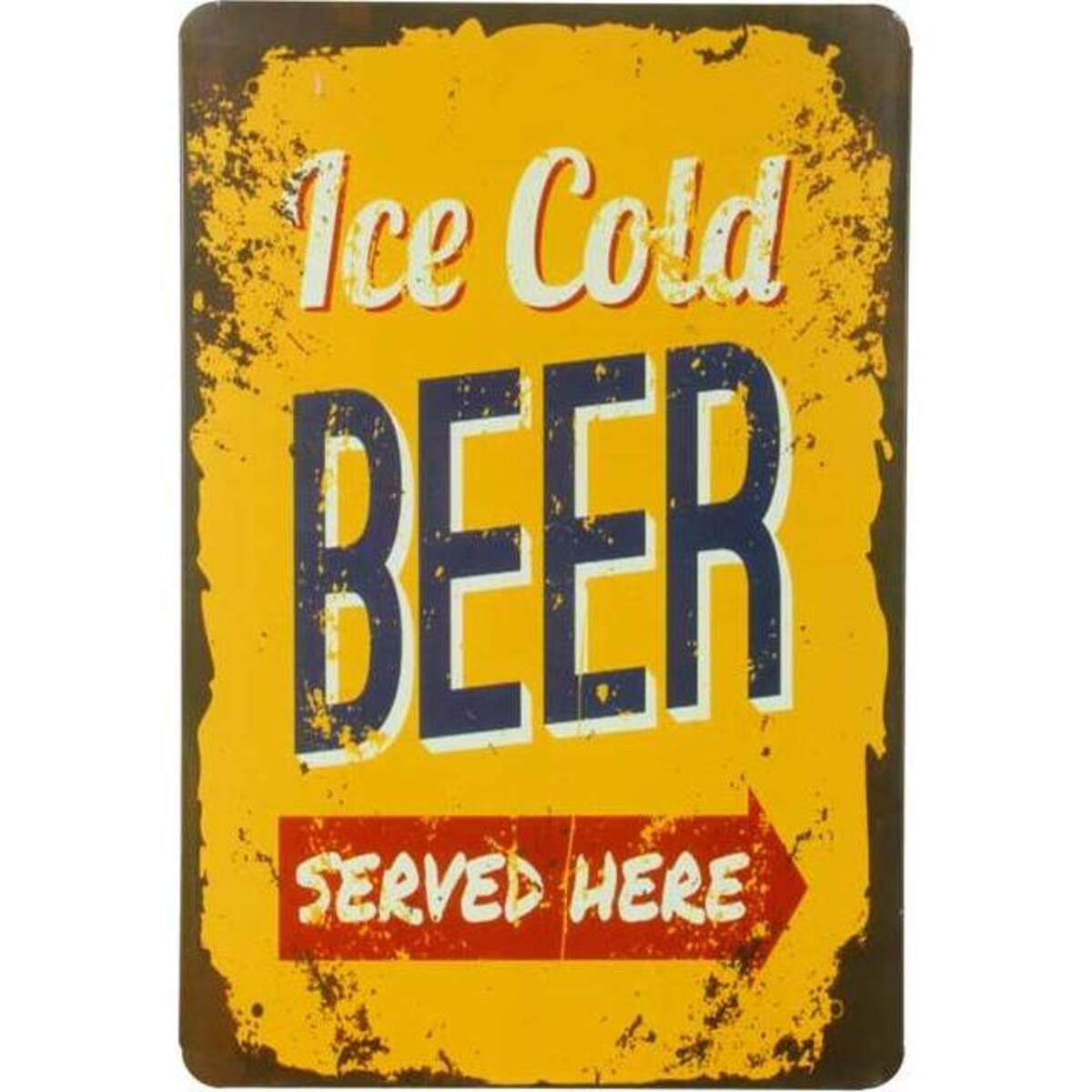 Tin Sign Ice Cold Beer is a tin board which looks prominent to the beholder due to the brilliant yellow background employed on it. This item measures 20x30cm and has some rusty appearance at the edges, which blends in well with the overall yellow applied for the rest of the sign - board. The words ‘Ice Cold Beer Served Here’ are visible easily, making this item a crucial aid for calling in clients for entertainment. Owners of restaurants, pubs and other places of leisure where alcoholic drinks are offered can acquire this product and position it at a suitable spot to attract visitors to their premises.