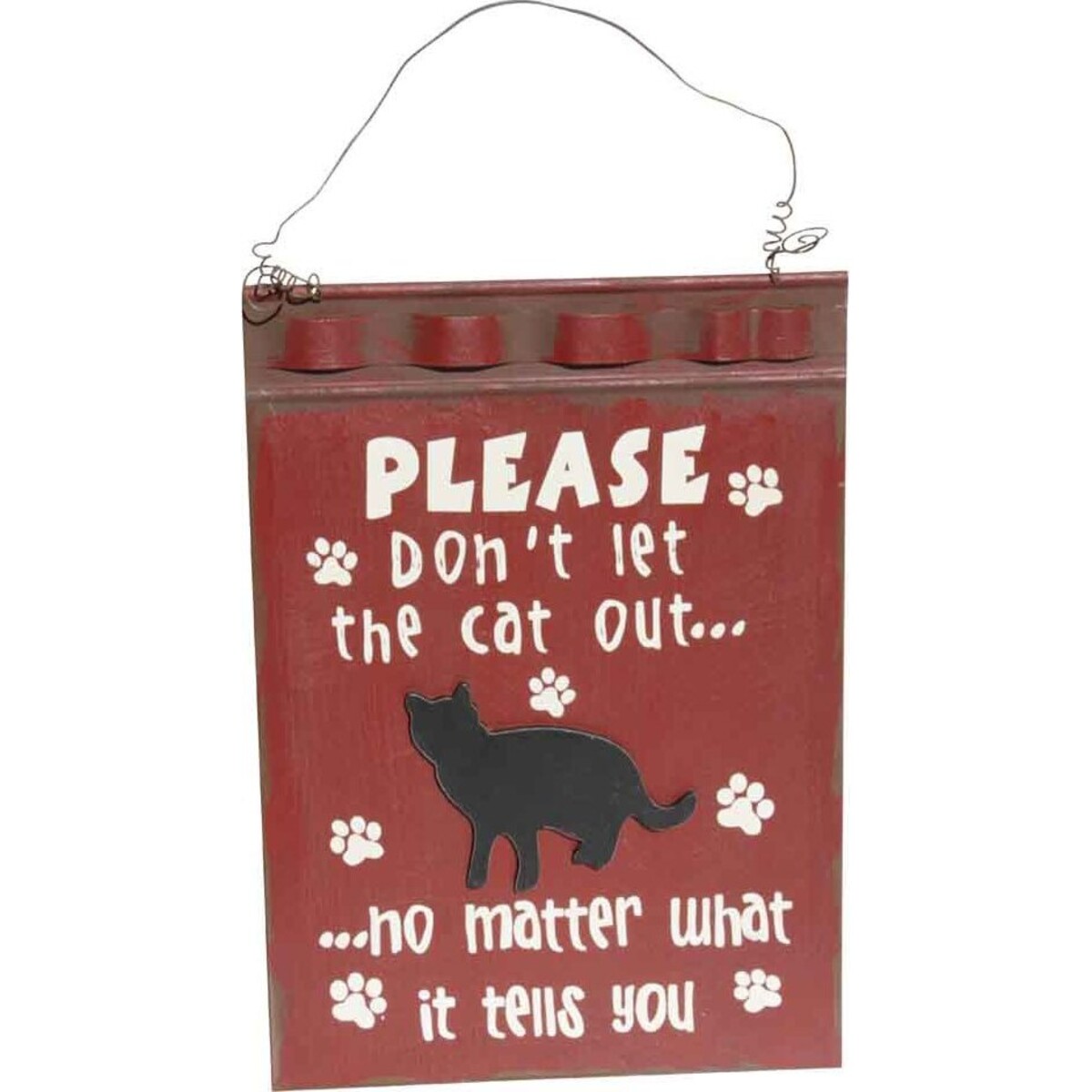Tin Sign Let the Cat is made from quality tin materials for unique and durable features. This decorative piece in rectangle shape is accentuated with the vintage and brushed look. The uppermost feature shows off the patterned look. It has burn red palette base.
