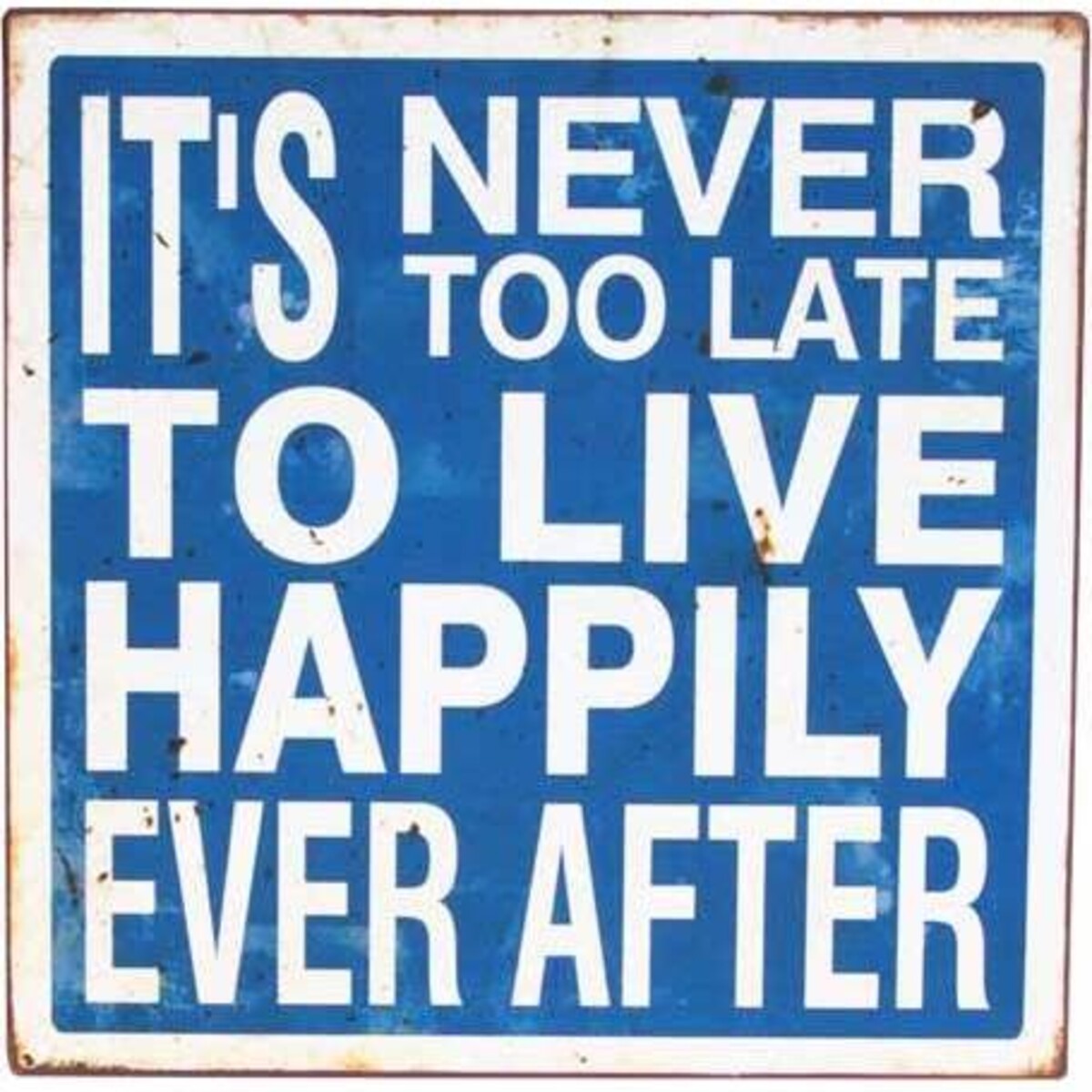 This Live Happily Tin Sign from Lavida is the perfect pick me up that you need when you're not feeling so great about happiness being right over the horizon. The vibrant navy blue sign features a bold white border and white wording that reads, "It's never too late to live happily ever after." There's aging around the edges to give it a vintage style look that you can't help but adore. Whether you place this sign in your home or pass it on to someone who could also use a motivational boost, it's going to be a perfect piece of artwork to see on a daily basis.