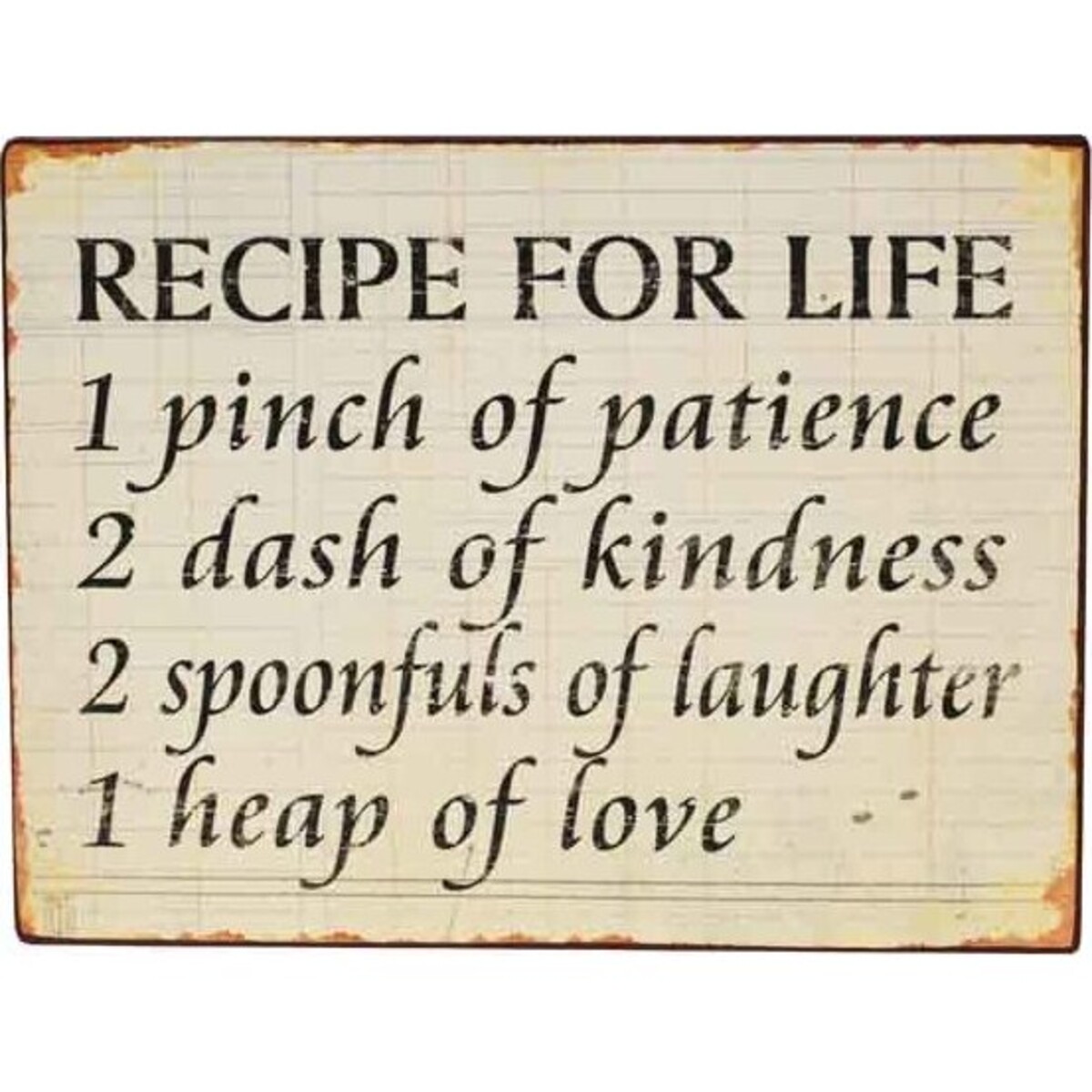 The essential components of a good life are outlined here in the Tin Sign - Recipe for Life. Believe it or not, the list is pretty short and straightforward that everybody who looks at it can immediately understand them.