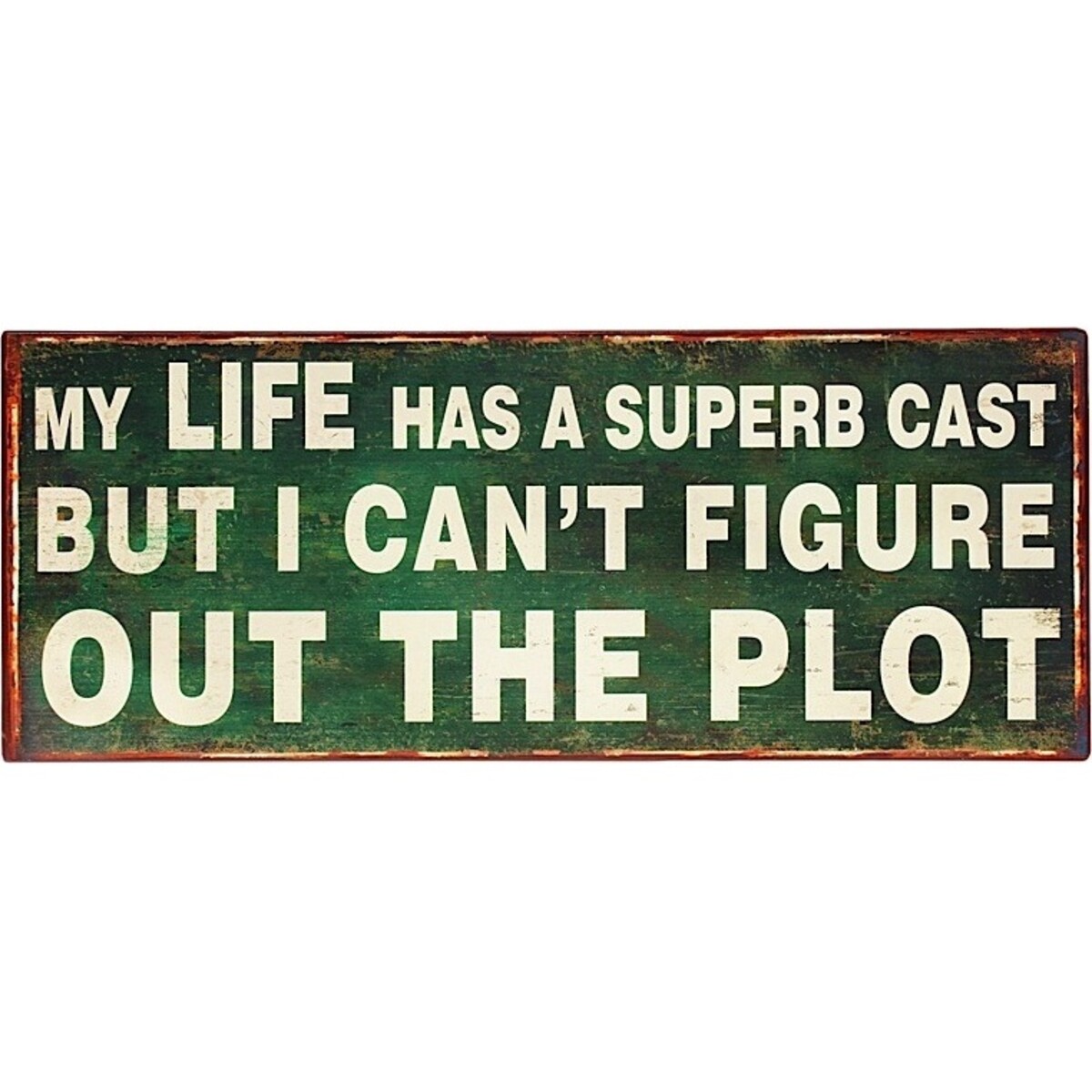 The tin sign is designed with a green blackboard like appearance, reminding viewers of the countless stage plays and role plays that are usually required in our literature classes. However, this simple tin sign also sends out a message of a life gone asunder despite having friends and family, one that is looking for the right way or the right track to tread.
