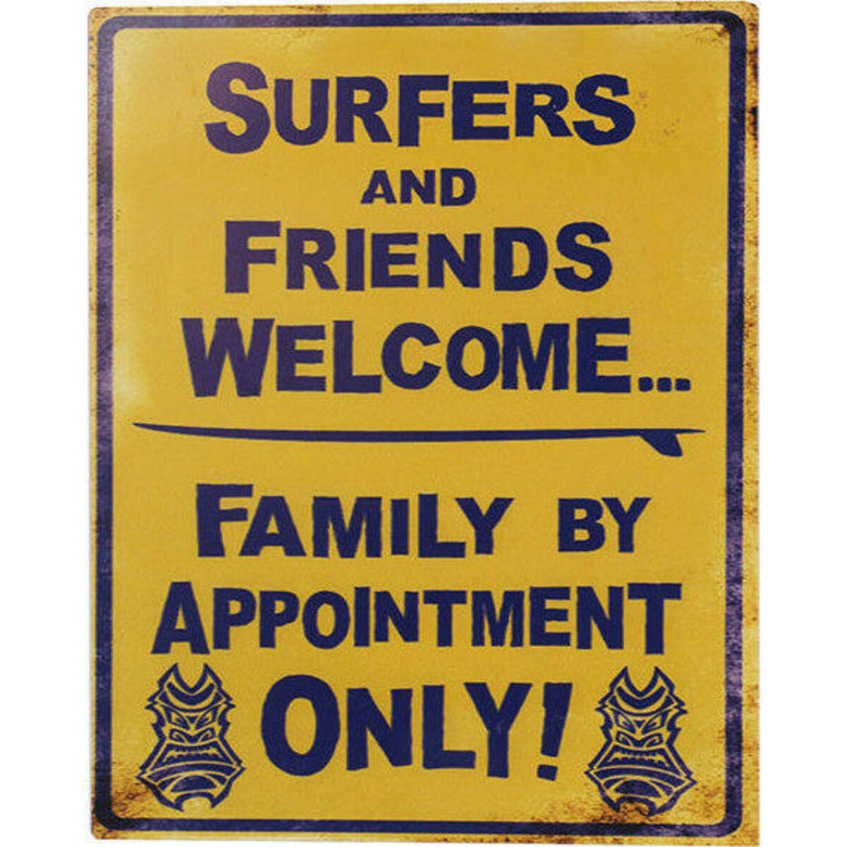 A bright and cheerful sign board can lend your spaces a relief from the stiffer more formal look. And this sport addition opens up your heart and what it feels about your love for the sea and surfing. Would look fabulous up on a door or a wall, or simply prop up. A teenager at home would love to host it in his or her room. The embargo on not wanting other guests is a light - hearted jibe at all who poke fun at a surfer's passion. Made of tin the weathered look along its rusting sides, adds more charm to it. The bright yellow, colour, the print and the choice of graphics all of it works to bring to you a retro feel quintessential to the very concept of having signboards. The height of this tin sign at 25 cm and a width of 20 mc makes it compact enough for the table placement as a prop, or better still hung - over doors or walls, would gather as much smiles as it would look of interest. Build in your love for surfing with an easy breezy message that has a cheeky ending - after all, which teenager would not like to say this!