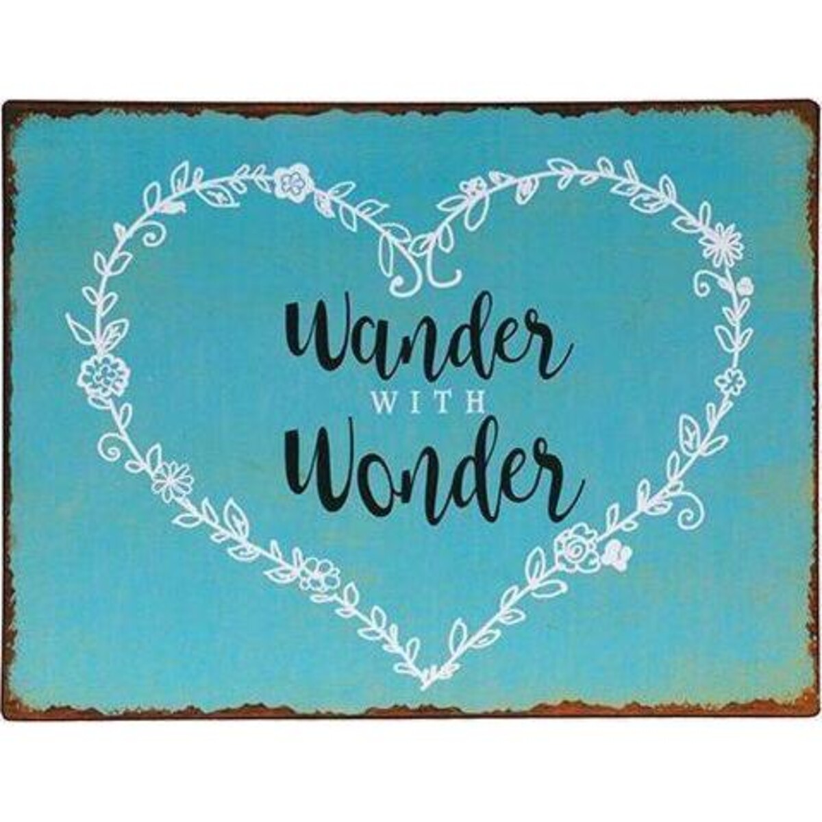 There is something special about this tin sign that combines the wonder that fills the heart with things new and the eagerness with which we look at life with more wonder. This tin sign would suit anyone's home - old or new, retro theme or contemporary because the wonder that life is filled with can be felt everywhere. Though it can especially be gifted to someone who has been bitten by the travel bug lately and cannot get off the road. A sign that also combines a gentle visual image that is delicate and unimposing while the colour seem to take it to a high with its brightness and delicate design. The rusty edged tin sign is about 35 cm in length laterally and 26 cm in height. A lovely respite from dull décor pieces for spaces in your home that could do with some cheering up. Place the simple excitements of everyday at the center of this wonderful journey called life and feel how happiness could flow from that affirmation of faith.