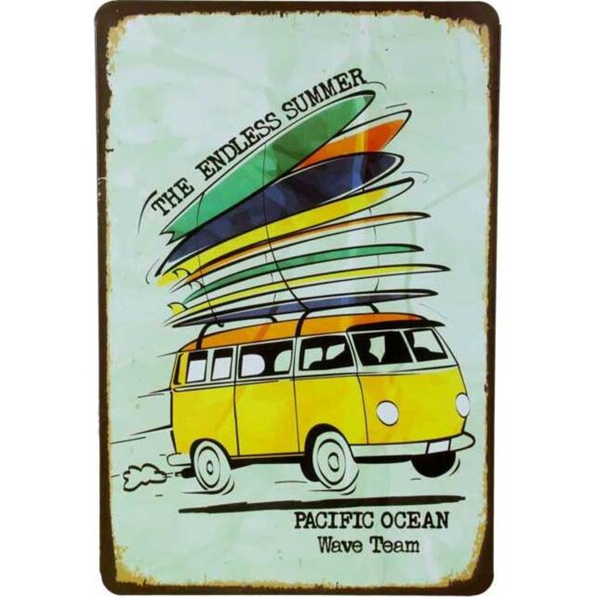Tin Sign Wave Team Combi is a vibrant sign made out of tin and measuring 20x30cm. It captures the spirit of leisure and celebration in a unique and outstanding style. This includes a yellow combi with some individuals inside. It is loaded at the top with multiple surf - boards of varying colours, mainly yellow, green, red and blue. The words ‘The Endless Summer are written just above them, whereas below the vehicle lie the words ‘Pacific Ocean Wave Team’. Aqua is employed for the background of this captivating imagery, providing the mild reflection of the sky on ocean waters. This would be a great sign to put up at one’s garden or somewhere strategic within the home.