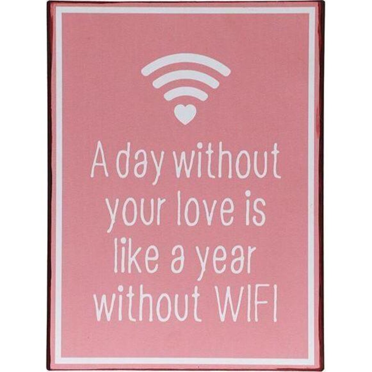 One knows the importance of staying connected ?be it for work, or entertainment - we cannot in today's times do without the internet. It's as necessary as the food we eat and the air we breathe. This tin sign reaffirms not just the value of love in our lives but also makes us interpret its value in very new manner - compared as it is to the value of wifi. Quirky, fun filled sand definitely most unpredictable in its messages makes these tin signs highly coveted for their value as decor enhancers. Such messages filled with laughter and cheer are always great for making small neglected space gain some more cheer. This tin sign in pink with its wordings suggesting a deep intense love finished off in a humorous , almost comical manner , bound to put that smile so needed. The height of the sign is about 35 cm and width is 26 cm making it well proportioned to be placed on mantles, tables, and on the wall itself. The colour and the thick white border makes the look more prominent and the symbol of wifi modified to mean love is a masterstroke in design.