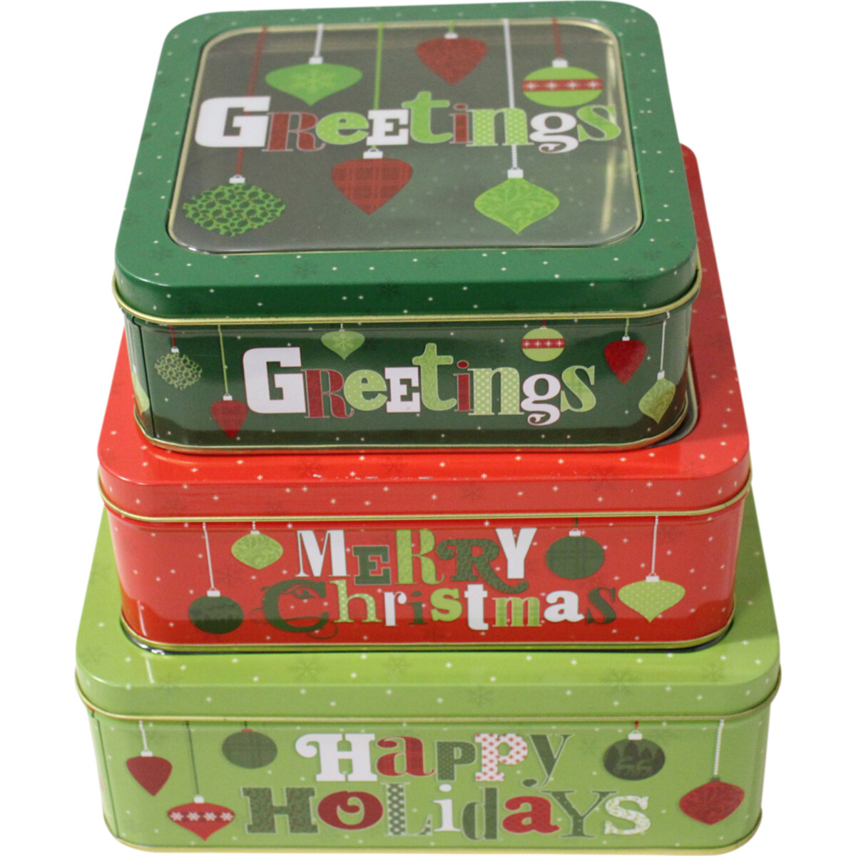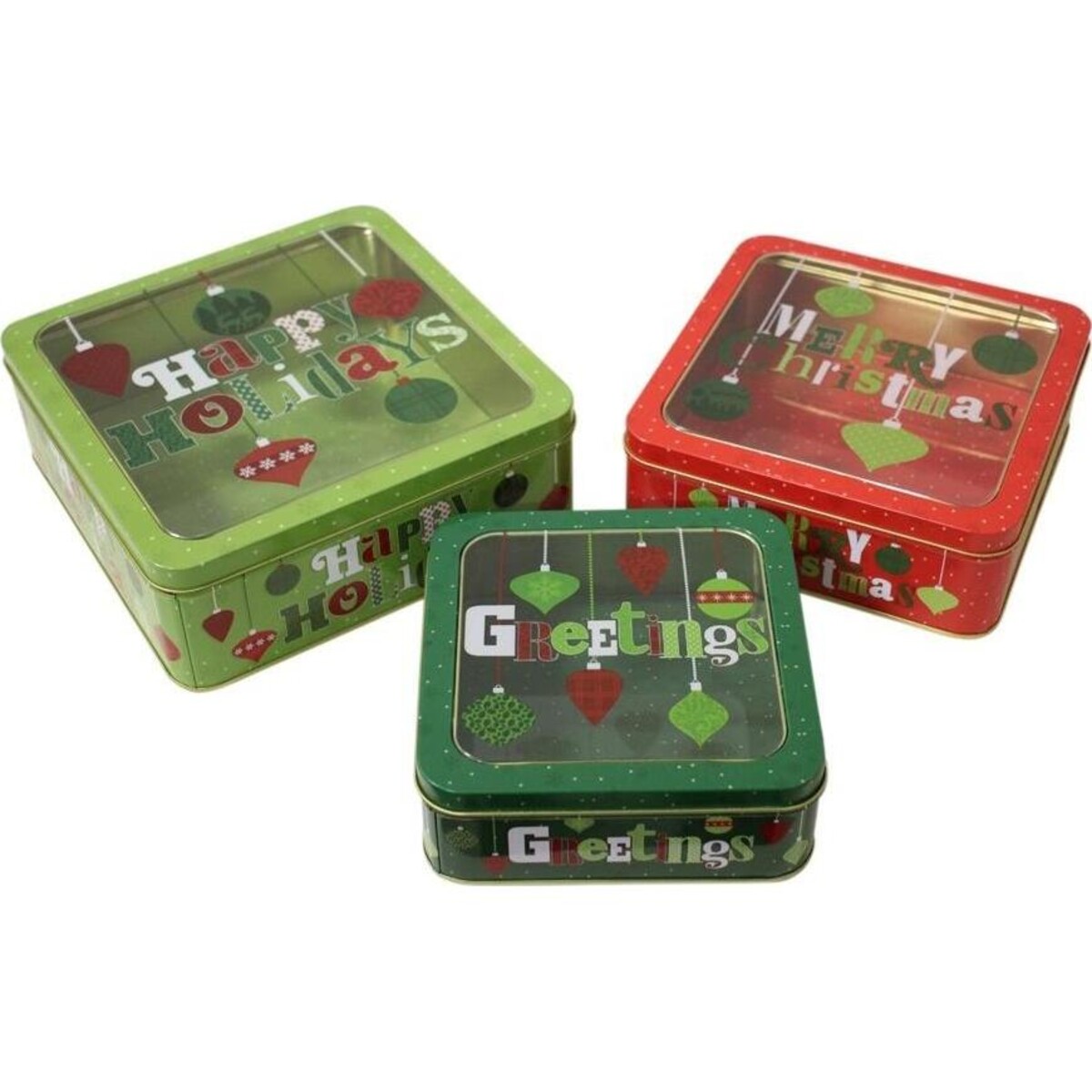 The set has three boxes - different colours and sizes and each with a happy message that conveys the spirit of the season like few things can. Sap green, deeper green and re - with lids that have a print as does the body. Asset that will help you gift away a variety of things in a neatly packaged manner and what is even better is how it allows you to retain the tins for usage later. Gift it, knowing that the one will retain will cherish using it even after what it holds is long over. The delightful mx of traditional style with modern usability gives it a great look. The clear see through top will help you look inside to see what you might have stored in it. An attractive ready to put to use set of boxes that are sturdy in make and delightful in looks.