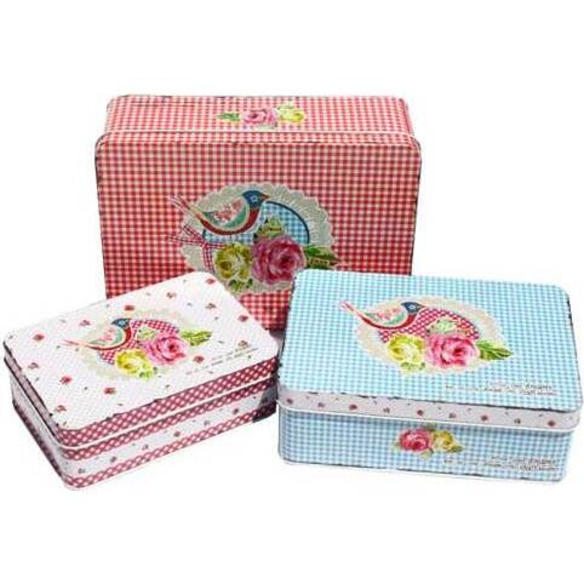 Introducing the set of Modello Bird Tins from Lavida. You'll receive three tins, each with the same bird and floral design at the center, but all in varying sizes and with different backgrounds. The smallest features a red and white polka dot background, the medium features a blue and white checkered background while the largest has a red and white checkered background. They're beautiful enough to display while being large enough to hide all the items you don't want seen. Isn't it great when style and function come together?