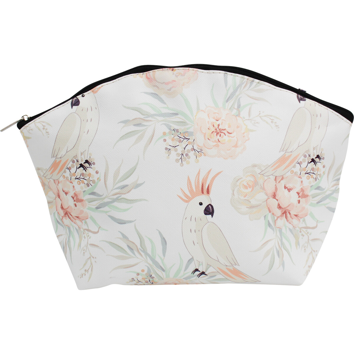 This zippered pouch is large on space and superb when it comes to its look - the kind that is going to be noticed as much for its delightfully large accommodation for all your toiletries as it will be loved for its sturdy built. The delightful parakeets on the exterior only goes to make it all the more lovable. The curved and arched top tapes to a slightly smaller base on which the bag sits rather well balanced. A great pick, if travelling is what you do often and crave for that large enough space for your toiletries which other conventional pouches fail to provide. High of sturdiness owing to the usage of PU which also makes it water resistant - a quality most desirable for its usage in the wash room.