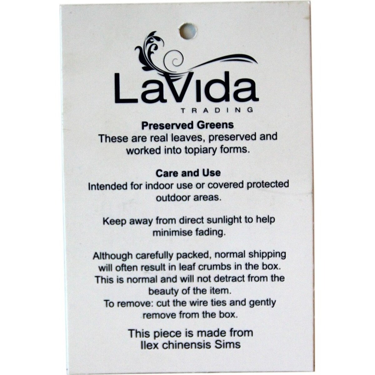 This product is made from REAL leaves that are preserved and worked into topiary forms. They are intended for indoor or covered outdoor areas. Keep away from direct sunlight to minimize fading.