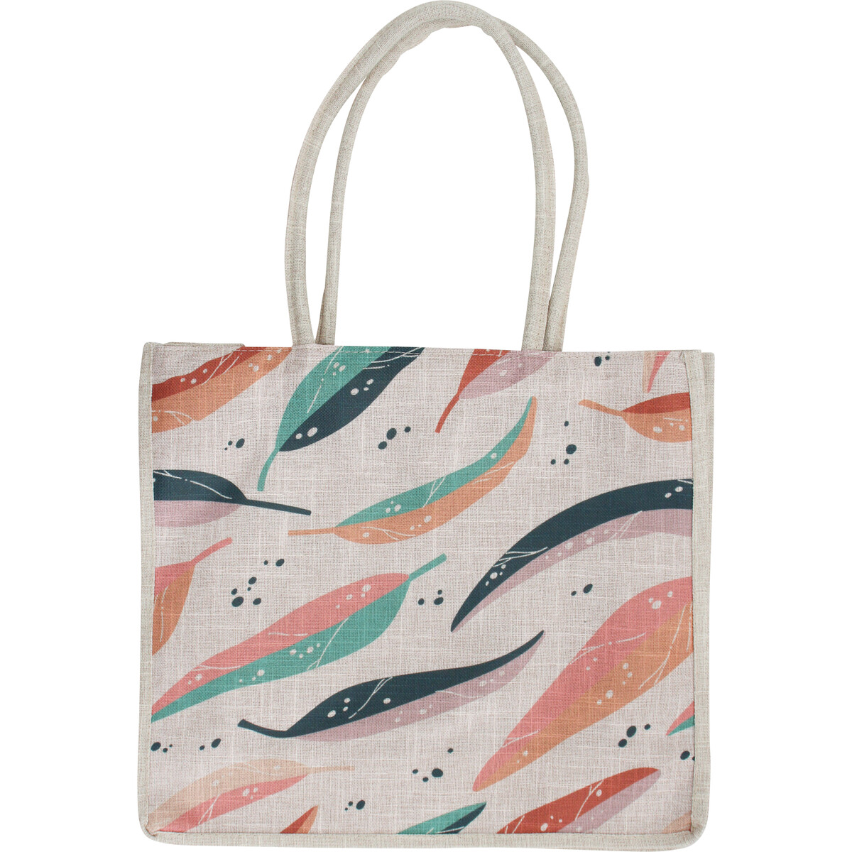 This product is a simple display of quintessence, a one of a kind piece. Its versatility makes the tote a handy and stylish handbag preference. Tote Gum Leaves is a makeshift shopping bag for carrying heavy stock of groceries, hold one's gym kit, a convenient place to keep school books and laptop for class. Did I mention one can easily use it as a picnic bag, a beach bag, a laundry bag? The list is indeed inexhaustible. This sturdy and hard-wearing Linen-made product is moderately sized and flexible enough to be folded away.
