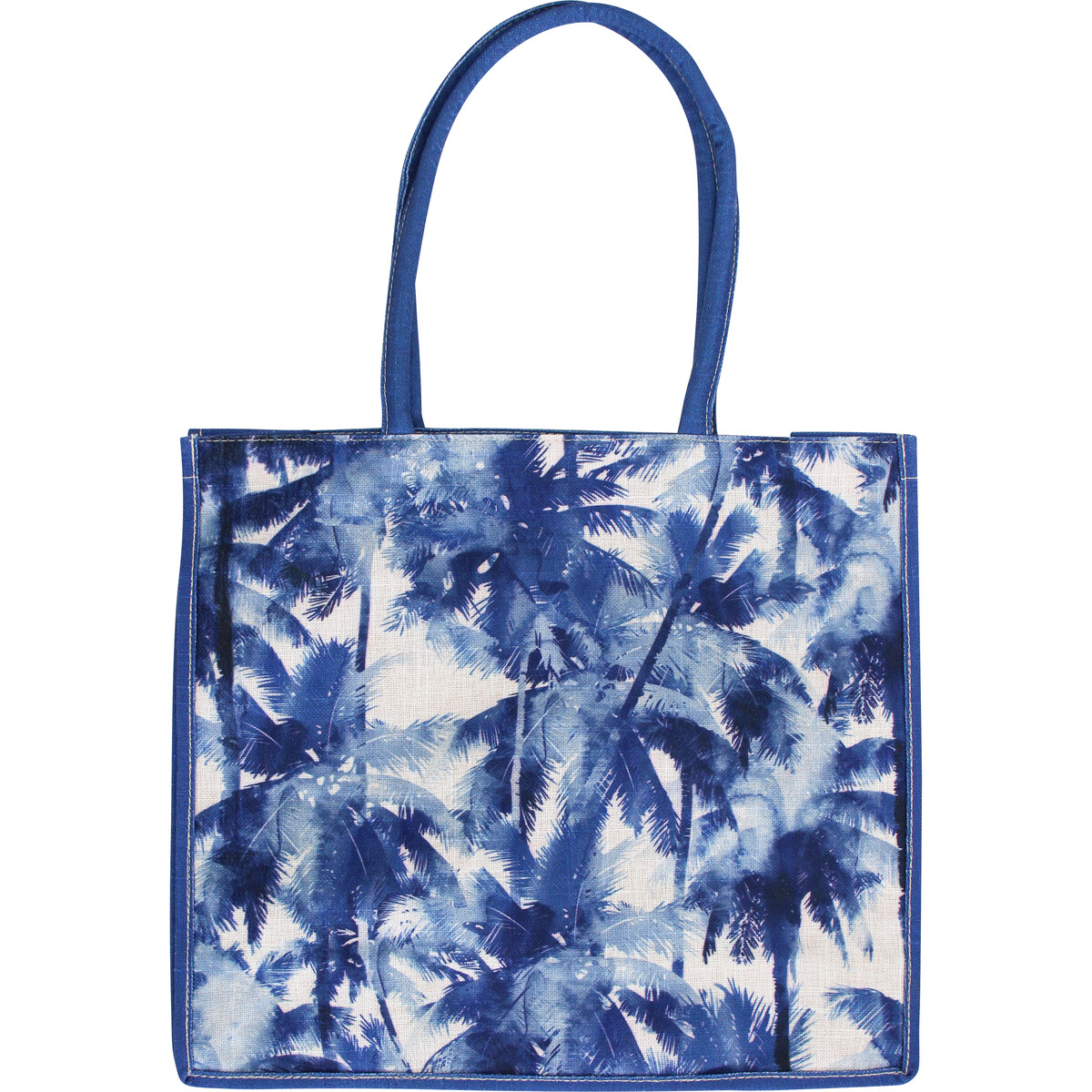 Linen has an undeniable reputation for durability and resilience. Tote Navy Palm affords long-lasting endurance. There are a few creases and wrinkles throughout the fabric that's part of its charm and complements the natural textured look of the fabric. Coming in handy as a portable bag for grocery shopping. This linen bag is a friendly companion to plan a perfect beach vacation. This is also a considerable choice to hold gym essentials. Featuring double parallel handles for convenient handling. The tote bag can also rest in the crook of one's arm.