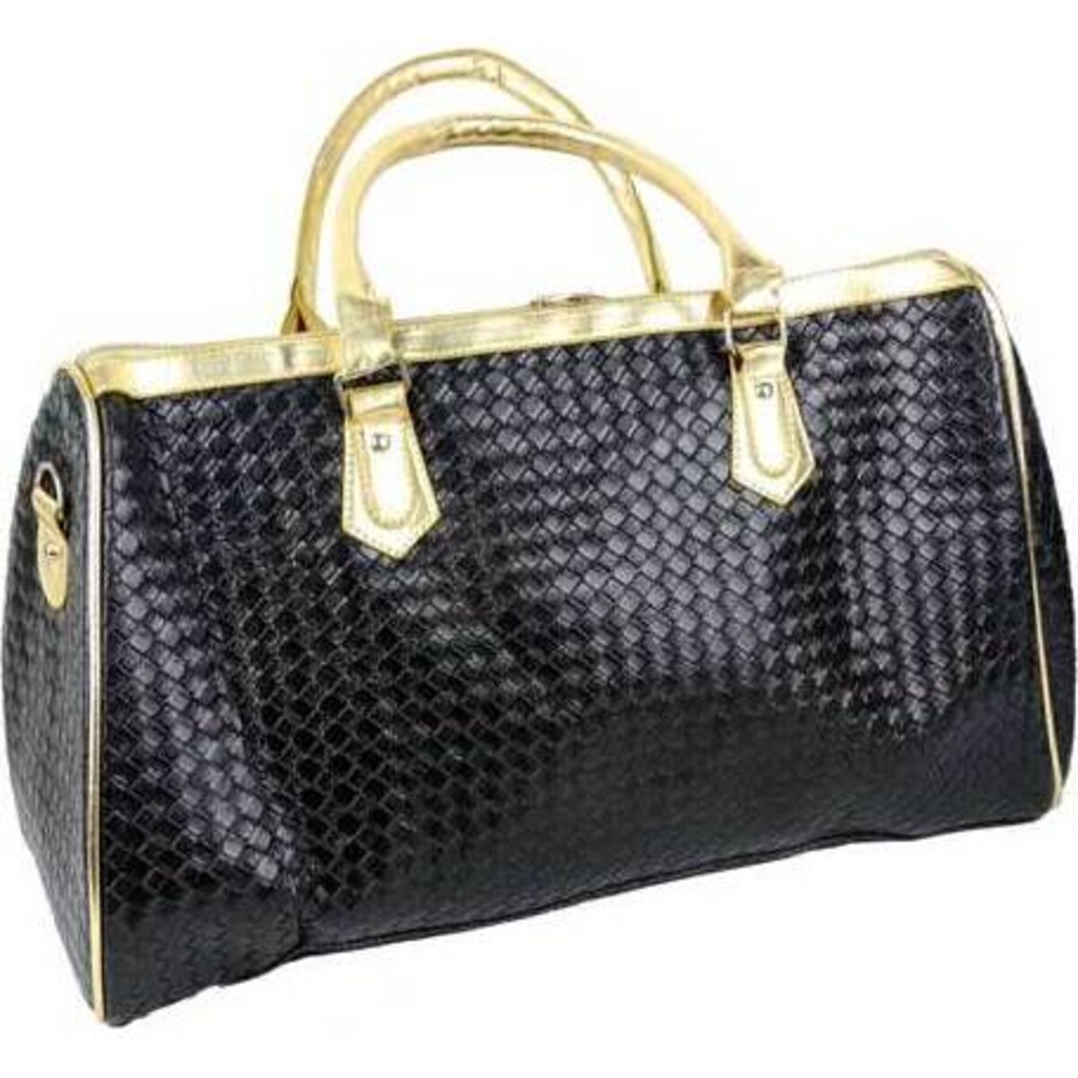 The simple duffle bag has been given quite a dramatic facelift with the usage of self designed PU material in black used along with gold. The woven black PU materials is pliable and soft while at the same time capable of holding quite a heavy weight. The gold handles and the ribbing on top of the bag adds a dimension of style that is truly pleasing. The bag comes in the typical duffle design with a single long zipper on top. The handles are rounded offering softness and ease of carrying. The bag is 51 cm long, 33 cm in height and 24 cm in width, making it suitable as hand baggage as well. The single compartment bag will be a great help when holiday shopping seems to be spilling out of your regular suitcase and you need that extra space for things you have bought with so much love. The bag can be held from the long handles that comes as an additional strap and the short one and be placed with ease on the floor as well. A great travel accessory you will be glad to own.