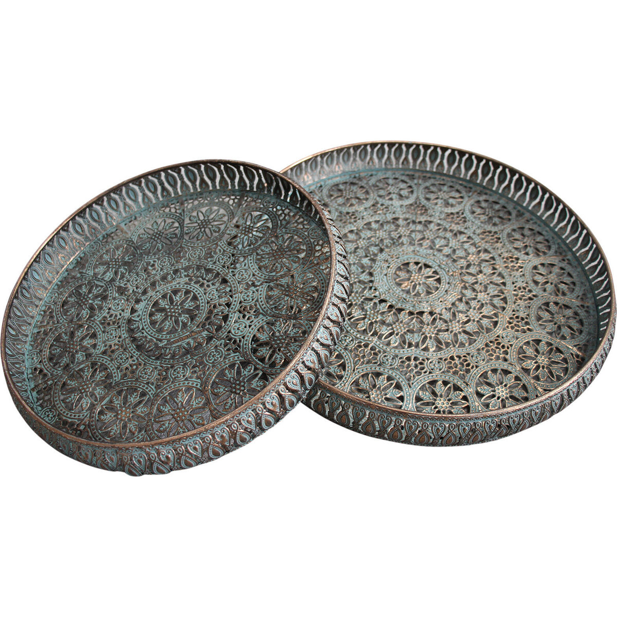 These gorgeous metal trays look like they are made of lace from far! This is because each of them features lovely cutout designs with metalwork sides that add to the traditional appeal of the trays. The antiqued gold and light blue finish completes the rustic feel of this set. Use the trays to organize vanities and shelves, or as a way to accent your favourite space. Keep the larger size for serving guests with their refreshments and the smaller one to adorn your showcase or as a bedroom display tray. You can even use both of them to display your products at a craft fair!
