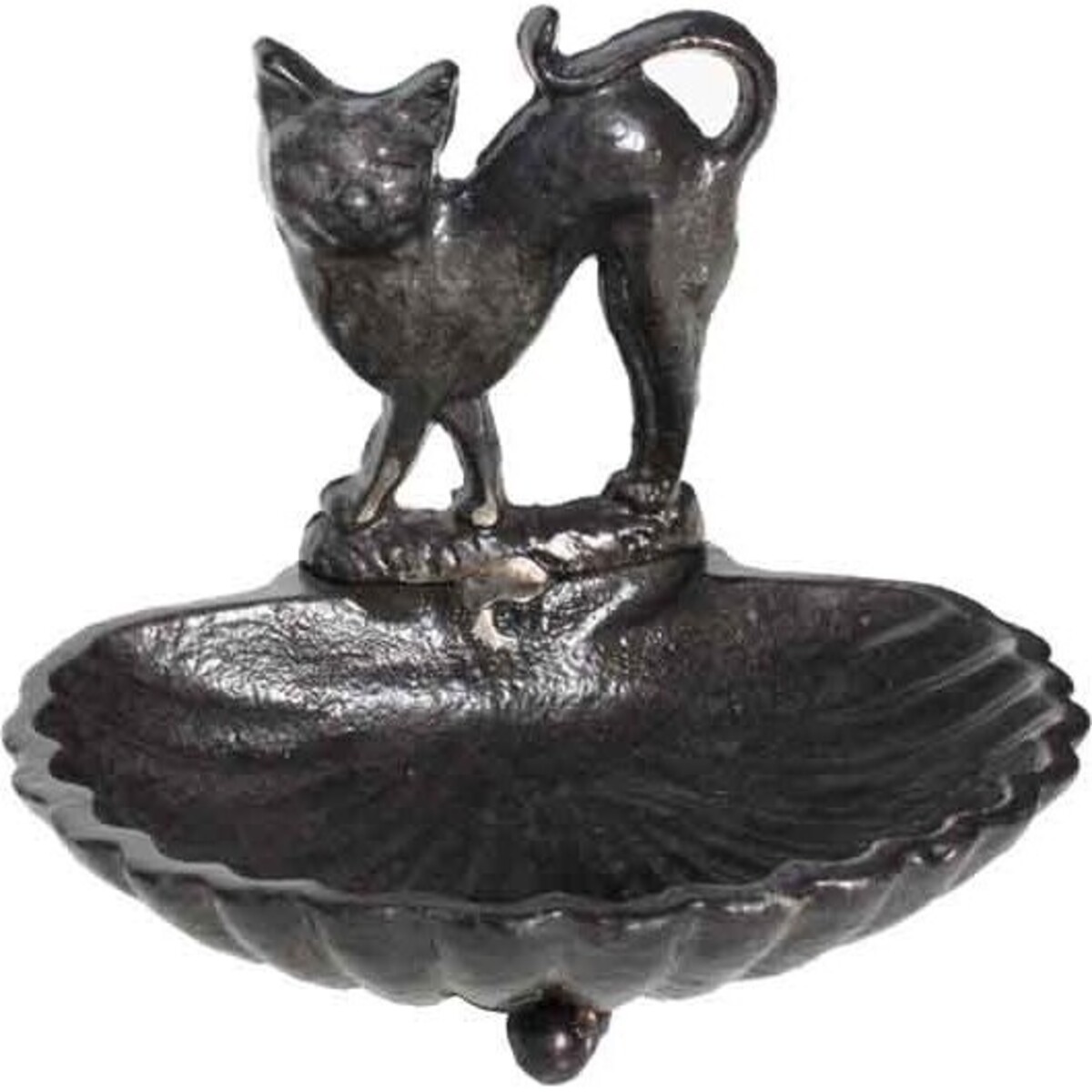 The Tray - Curlie Cat is a beautiful and stylish metal craft that features a clamshell with a sculpted cat standing on top. It makes a perfect home d‰cor item but also makes a fine cigar tray.