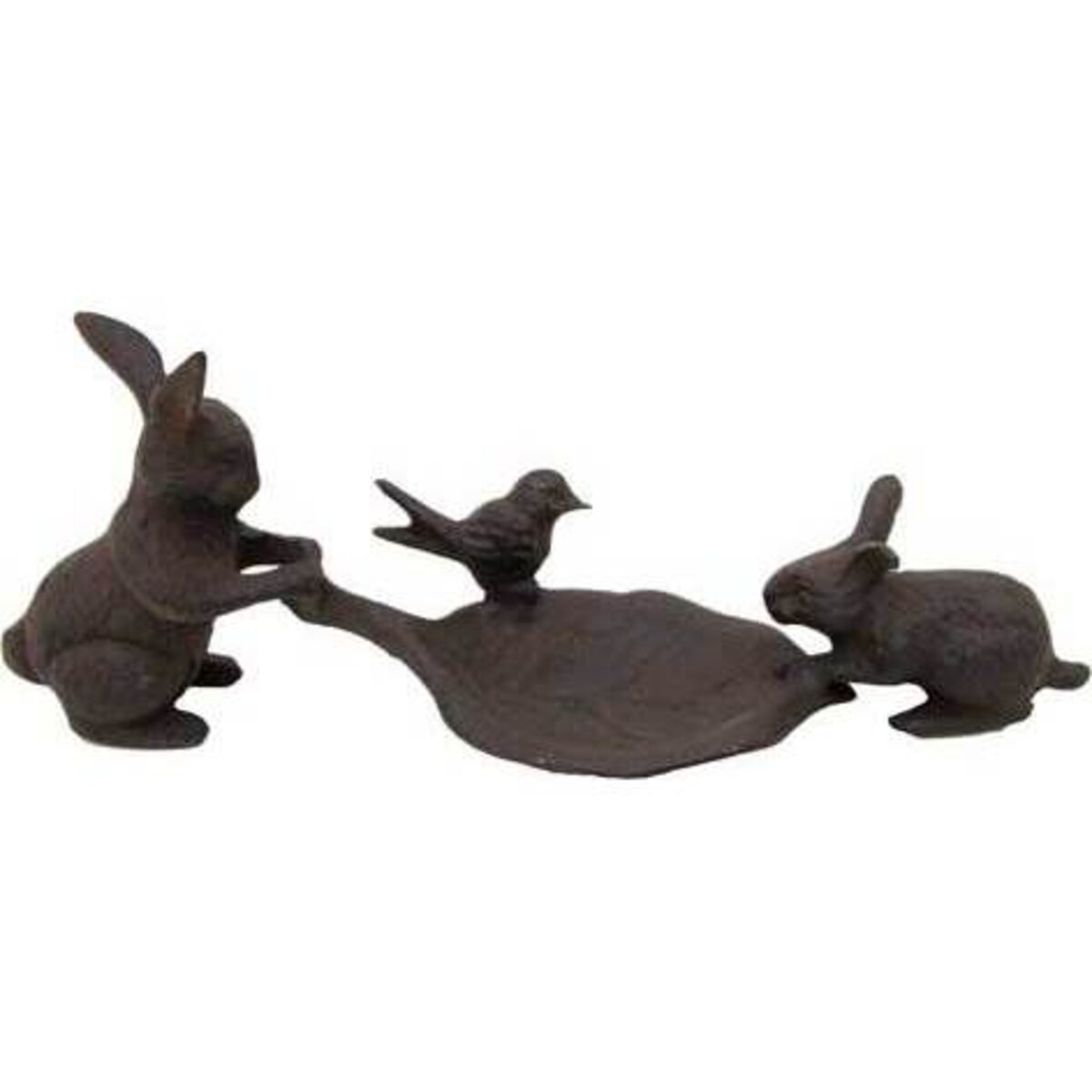 Our delightful Forest Animals Tray has a pair of rabbits that appear to be in conversation with a sweet little bird that's perched along the edge of a large leaf. The leaf is actually the tray for this ensemble and is perfect for soap, jewelry, coins, or keys. Your customers will find it ornamental as well as useful.