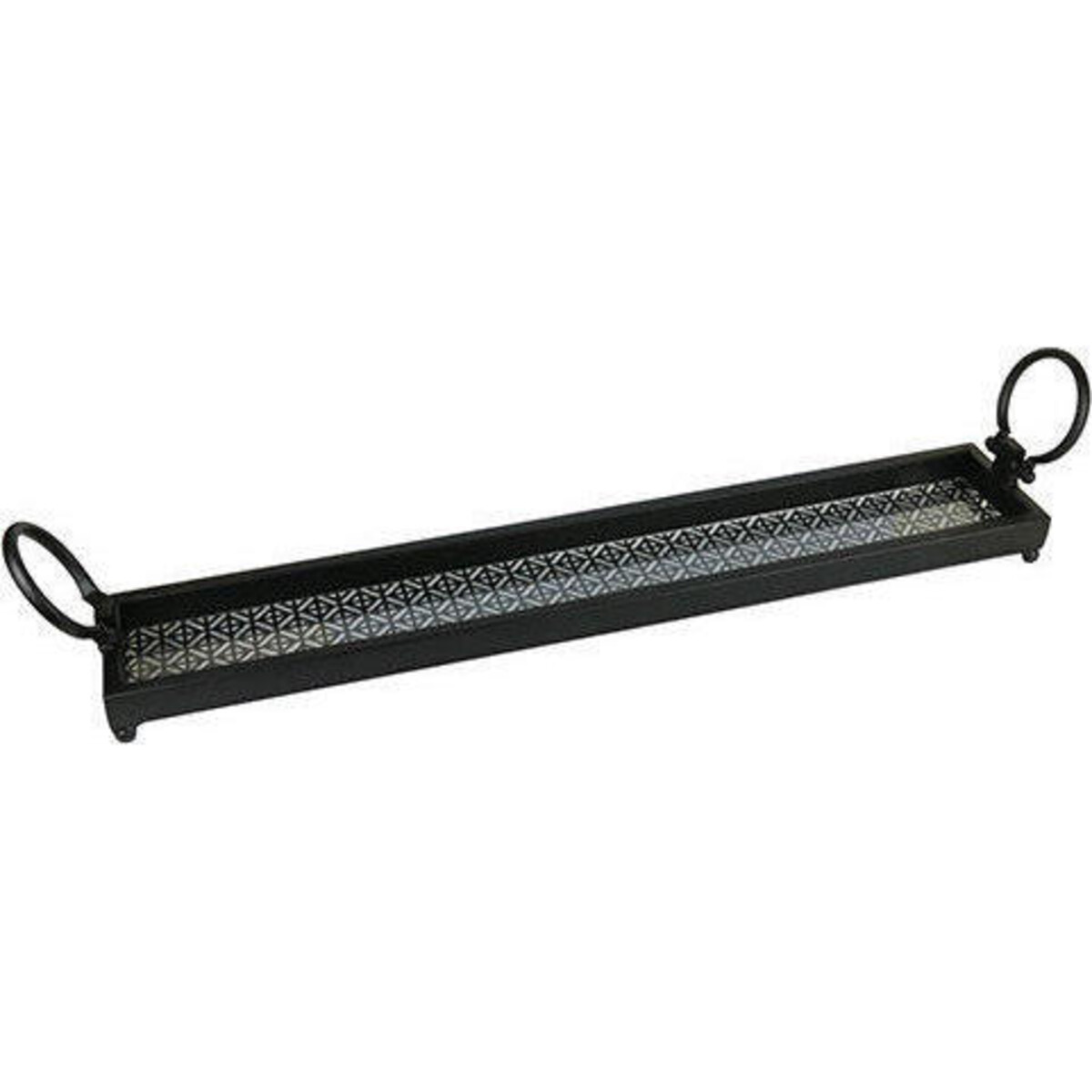 Adding things that have a unique design makes your efforts all the more fool proof when it comes to adding afresh new look to your décor, and with additions coming from Lavida that knows the need of contemporary homes, the task gets all the easier. Here is an addition that will wow anyone who cares for traditional looks and the sensibility of modern design. Made from metal, this tray is narrow with two round rings on the sides helping the lifting and placing. The base is made up of fine grill design almost like filigree which can be seen through the glass that makes up its more solid base. The tray would look superb hosting votives pillar candles and the likes. You could place bowls of finger foods, place glasses and vases in it as well. The length is 60 cm and the width at 10 cm makes it adequately large to make a bold impression. Dress up a table with its presence or simply use it to carry glasses and bowls , whichever way, it's a piece hard to miss.