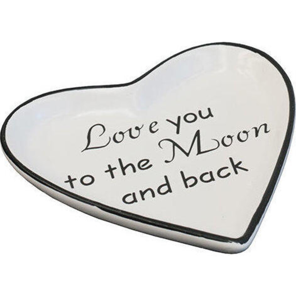 Apart from the fact that the tray has been created from ceramic, given a pert and pretty finish that is simple yet very appealing, it inherently has a very vintage feel to it. Perhaps it is the proverbial words of love o it or maybe the print in black on the white surface that does that - in any case it will look pretty on the bedside holding all of this tiny treasure that tend to get misplaced or even lots leaving trinket collectors heart broken. The tray is shaped like a heart and has love filled words on its base that says - Love you to the moon and back - perhaps a message most suited for a daughter or mother and surely the kind that will add a feeling of cheer and comfort to the space. The raised rim has been given a plain black edging that defines the shape even more. The size too is suitable for multiple kinds of usages with its length at 11 cm and its width at 10 cm and its depth of about one cm.