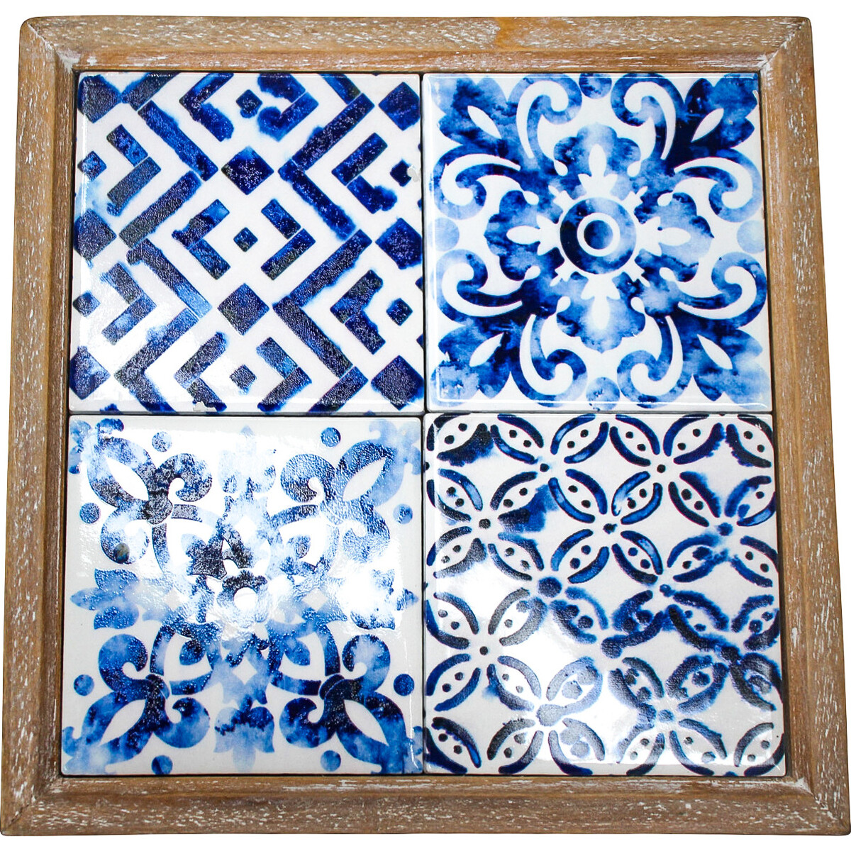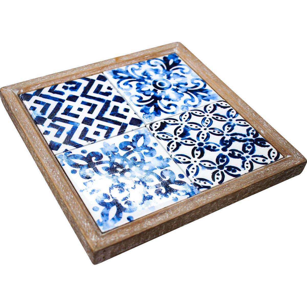 The very design of this tray makes it as convenient to sue like any other platter. It has bene created from ceramic tiles that are firmly placed inside the wood look MDF frame. The subtle design printed on the face of the tiles lends it its beautiful look while the classic design in blue and white makes it feel more sophisticated. The ceramic top is easy to wipe clean in case of spillages that will invariably happen. It looks as stunning as a table top accent being the perfect base as it is for vases and any other decorative that you wish to highlight. The sturdy MDF made base is a perfect foil for the four ceramic made tiles that are fused in pattern that makes a decidedly beautiful impact on the setting you may have wanted to create.