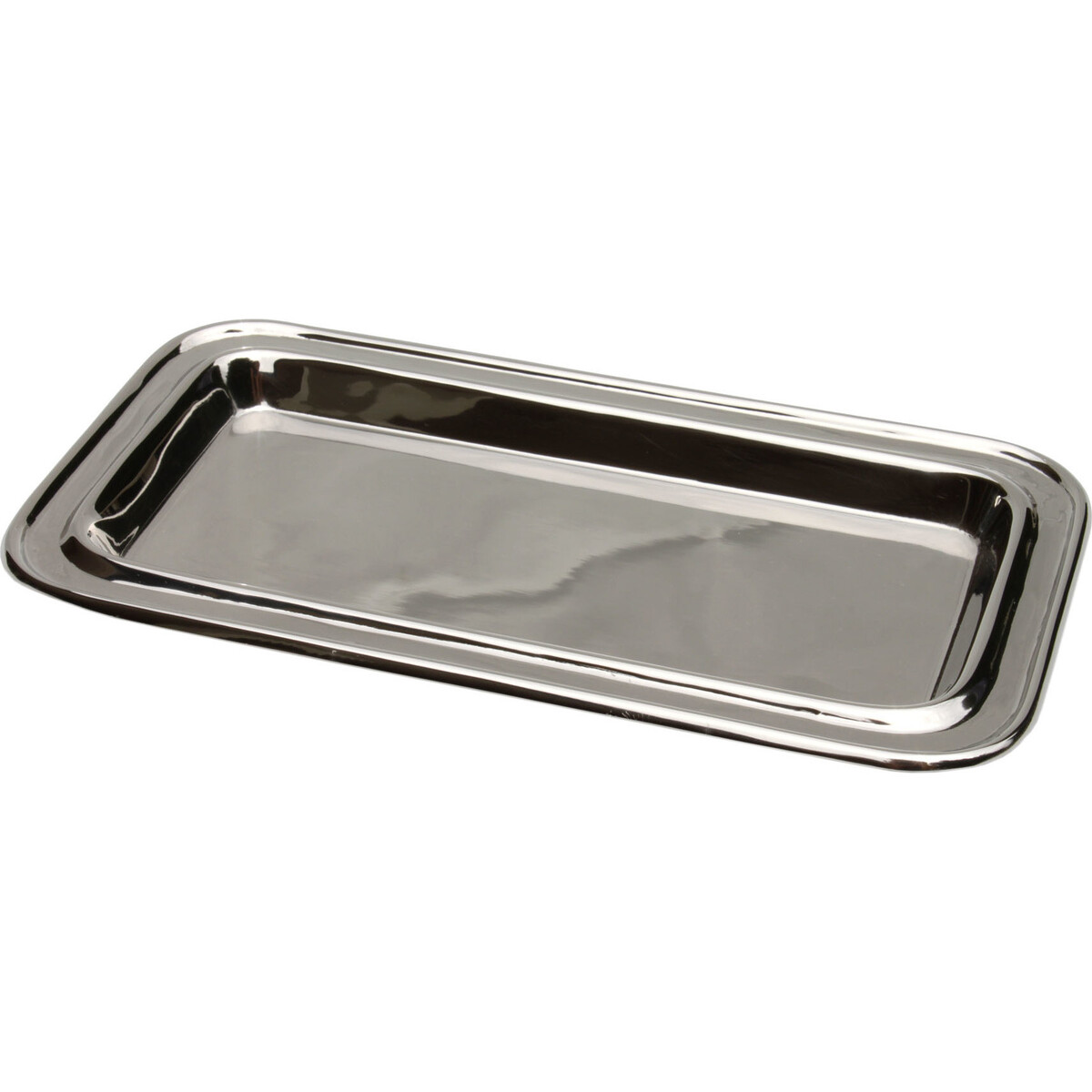 Present your appetizers, small desserts and any dish in style with this polished steel serving tray and allow your loved ones to enjoy that "catered" feel. This tray is built sturdy enough to provide ample support for heavier dishes, making it possible to serve multiple people at the same time. Line up those appetizers and small desserts in style. If you are serving your holiday feast buffet-style, these trays make it easier to serve your food in an elegant way, reflecting your keep attention to details. When not in use for serving, you can utilize these trays for decorating and storing food products and fruits in a more festive way. It sure adds a perfect touch to brighten up your kitchen and dining room.