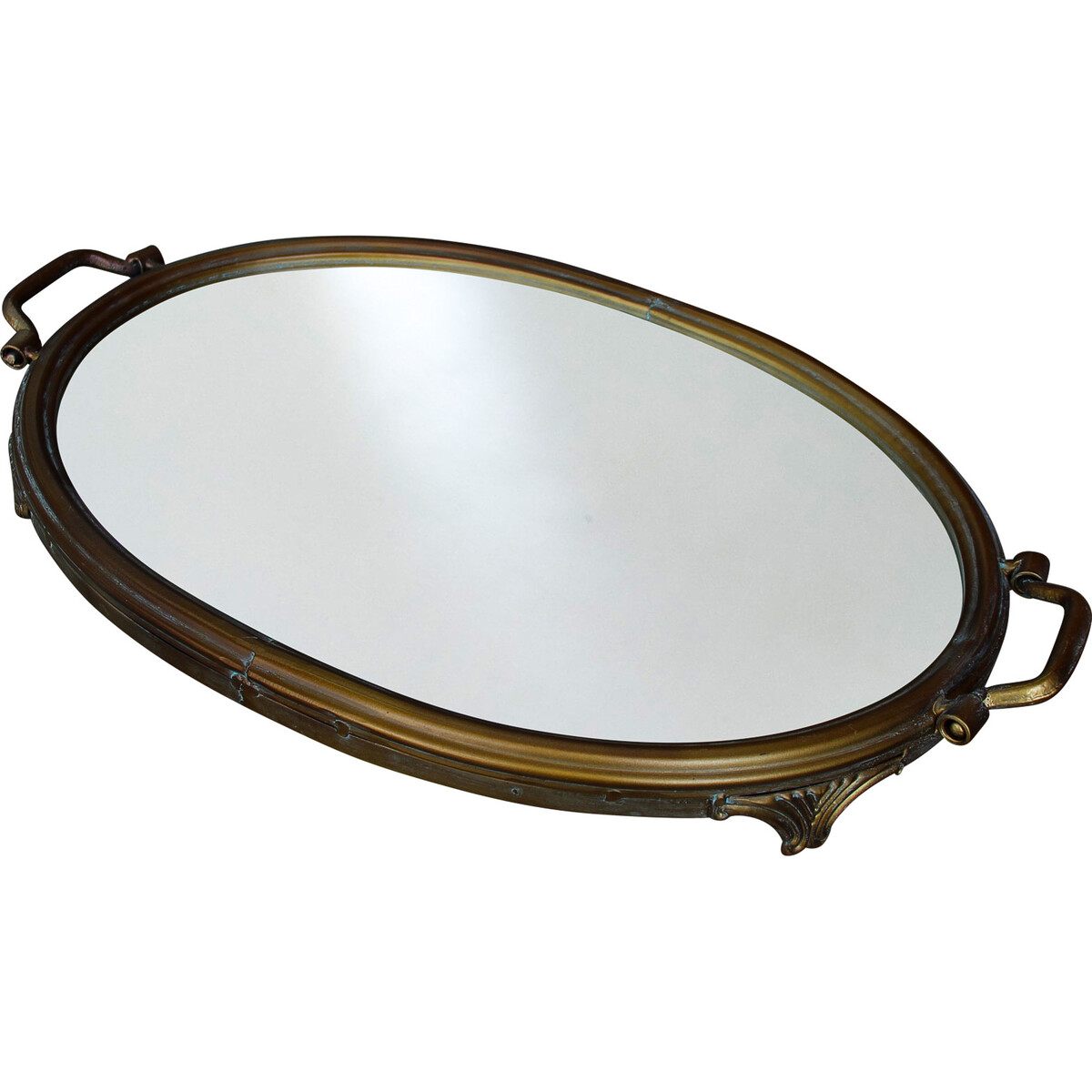 Bring the joy of things modern chic and vintage all at once to your décor with this gorgeously embellished oval tray. It has handles that are detailed in design and makes it rather simple to place the large 60 cm length size quite easily. It can be topped with candles, potted plants. Bowls of eatable or simply lace a large floral arrangement with candles around it and create a breath-taking display set atop the mirror surfaced tray. The width of the 50 cm length tray is around 33 cm making its large enough for creating a cluster kind of arrangements with plants and candles and thus adding that all important centrepiece in your décor, which is always needed when evenings are special. Candles and the like placed on top with help brighten up the space too as the mirror will reflect back the light beautifully. Make your home light up the chic way with this ray display which in itself is a great means to add décor accents on as well as be used for regular platter service.