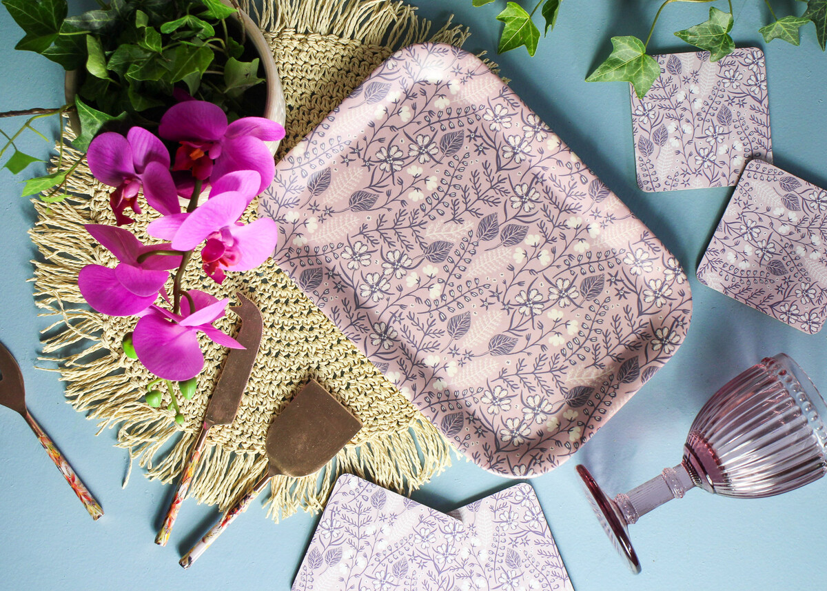 We have to say, our Tray Rec Dewberry is the kind of piece that quietly impresses just about everyone who sees it. There’s something about that calming mauve background layered with delicate deep violet floral motifs - it instantly draws people in. And we know how much customers love products that work as both practical serveware and decorative pieces.
