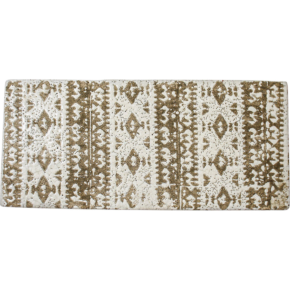 Give your serve ware this delightful look by using this tray for serving cheese and fruits or bread and all kinds of snacks atop this tray. It is a rectangular one with a lovely sheen and textured pattern making up its exterior. The shape being rectangular gives you maximum utilization of the surface of the tray. The delightful neutral colour and pattern is the kind that will blend in well with all kinds of décor where it will be placed. Its size too is perfect for placing at the centre of the table-or for taking around with ease. The tray being made of natural material will retain its sheen and with one wipe of cloth resume its dull and delightfully elegant kind of appeal. About 38 cm long and 17 cm in width gives it a large open top where one could place several edibles. The soft hued brown in the print will coordinate with all colours you may have in the décor.