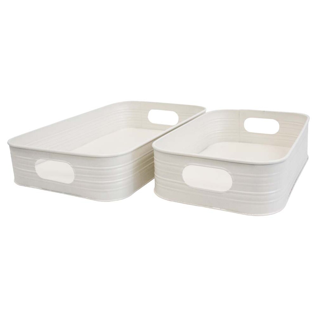 This Tray S/2 Ivory set is something different. It has that robust, simple look that fits perfectly with the whole country-chic resurgence, but doesn't go overboard on the nostalgia - still looks current and clean. You get a set of two in each order: The large is 39.8x24.8x7.7cm and the smaller one at 32.5x20.8x8cm. Both are metal with an off-white finish that's been - well, let's call it gently pre-loved by design - with a deliberately distressed surface so they don't look too clinical. Retailers seem to love it for its versatility as much as its shape.