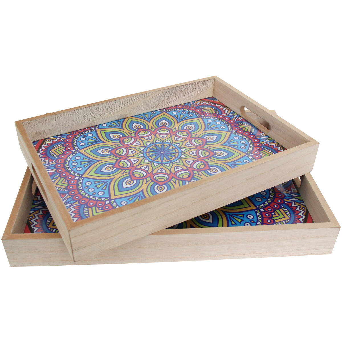 This set of multi-colour trays is one of our favourites. It's easy to see why. The vivid mandala design paired with the natural finish makes these trays that bit more memorable. But it’s still not so loud that it’ll overpower a table. We’ve found the design really lifts plain decor or brings out a boho feel.