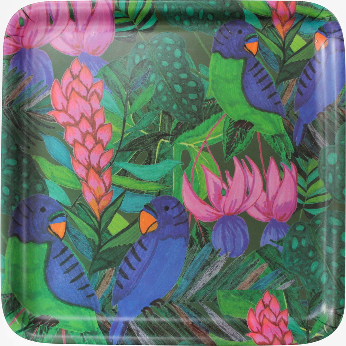 This one’s for shoppers who want a bit more colour in their serveware. It's our Tray Square Amazon Parrot. Right off the bat, the design is a showstopper. Bright parrots pop against lush green foliage - and those magenta and pink tropical flowers? Eye-catching, modern, and surprisingly versatile with almost any tableware colour theme. At 33x33x1.5cm, it’s spot on for the table centre, coffee counter, or as a serving platter when guests come round.