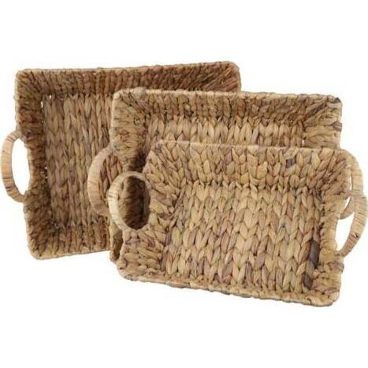A sophisticated and elegantly finished set of trays that have been created form an organic fibre called as water hyacinth famed for its durability, pliability and being very organic in every sense. Modern and contemporary homes are wanting material usage that is as close to nature and possible and this set of trays does justice to that need.