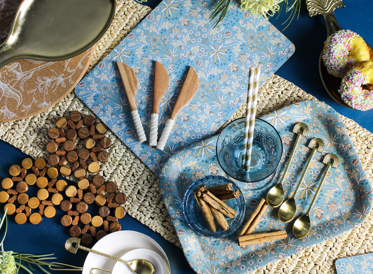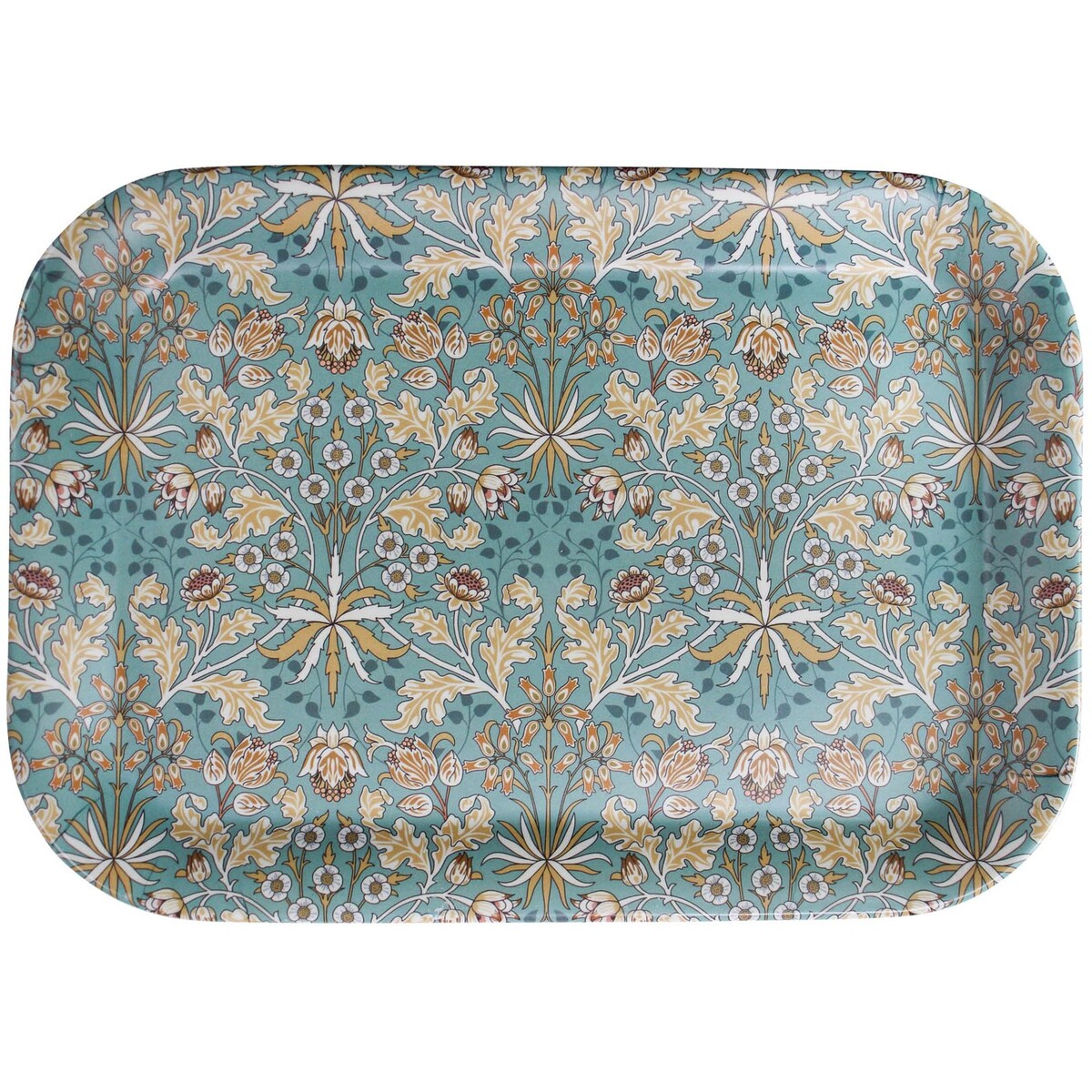 Charming vintage floral pattern in the most softest of hues, makes the William Morris tray a delight to use. Softly curving at the edges that give it 1.5 cm depth, the tray is rectangular in shape-easy to grip from the sides and has adequate surface to carry a number of glasses or bowls and cups and such articles while serving. The materiel it is made with makes it lightweight yet its sturdy enough to take the weight of its payload. the pretty floral pattern in soft colours gets a glass like finish owing to the superior quality melamine that imitates the look and shine of glass and yet is chip and stain resistant.Well balanced while carrying around, this is an accessory that will see you through many of your best hosting moments.