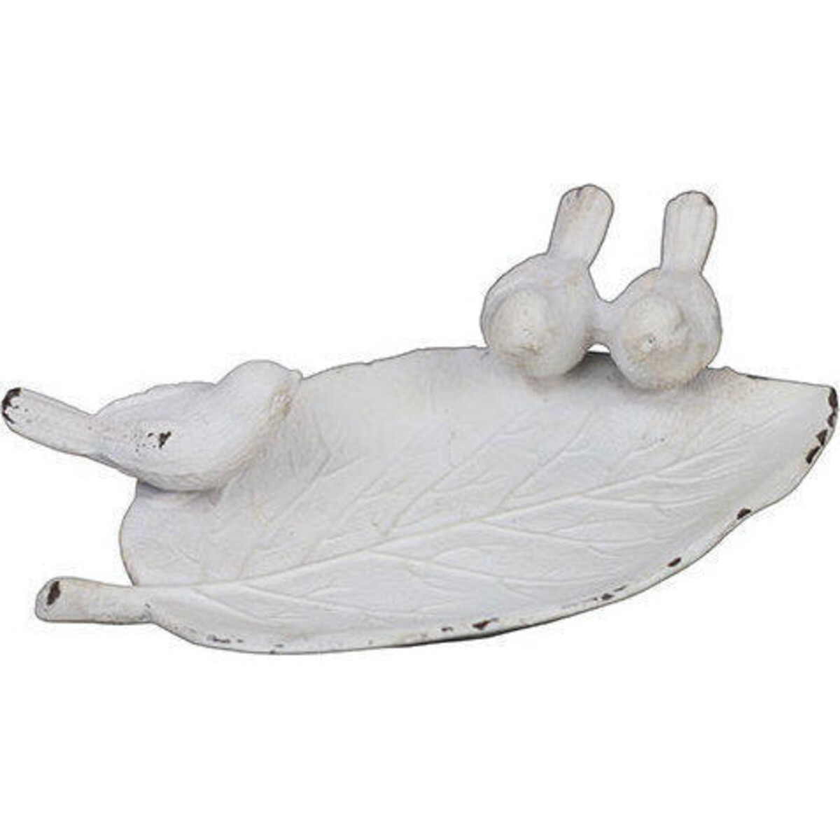 Add a fun and informal touch that creatures from nature brig into your surroundings and when you see this metal made tray in white you will be convinced about it. The 15 - cm long tray has three tiny birds to at one end and one more sitting on the edge looking into the platter for some stray; leftover morsels. This tray could be as great as a trinket tray on your dresser as it could be o your bedside to hold on to the last - minute things like rings and you watch before you turn on. Place it on the coffee table to break the monotony of a more formal look and see the softness this unusual design tray will bring there. Made of sturdy metal, it has a n enhanced look because of some shabby chic underpinnings in its design. The 15 - cm length and 10 cm width makes it adequately large also to place some knick knacks for a display or to simply place some candles on it if you wish to make a display more charming.