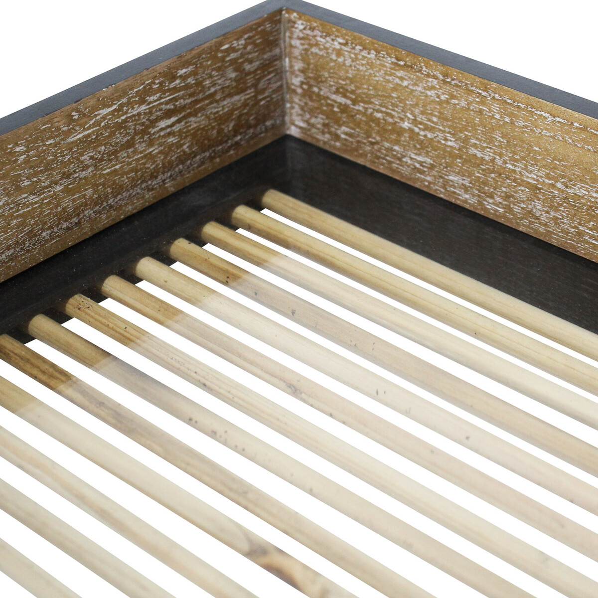 Trays are an essential element in your everyday need articles used at home and when finding one that is hardy, well balanced and sized for convenience matter you could opt for this set with two sizes included in it. made from material that is both light and sturdy-the bamboo and timber gives the trays a lovely organic woody appeal while the glass cover keeps things neat and easy to wipe clean when inevitable spillages occur. The handles are easy to grip and the two sizes help you serve a variety of things from small blows loaded with nuts to larger platters and several glasses in the larger of the two trays. You could also find it a versatile means to help accent your vases and planters by keeping them at the base to help leverage their looks further.