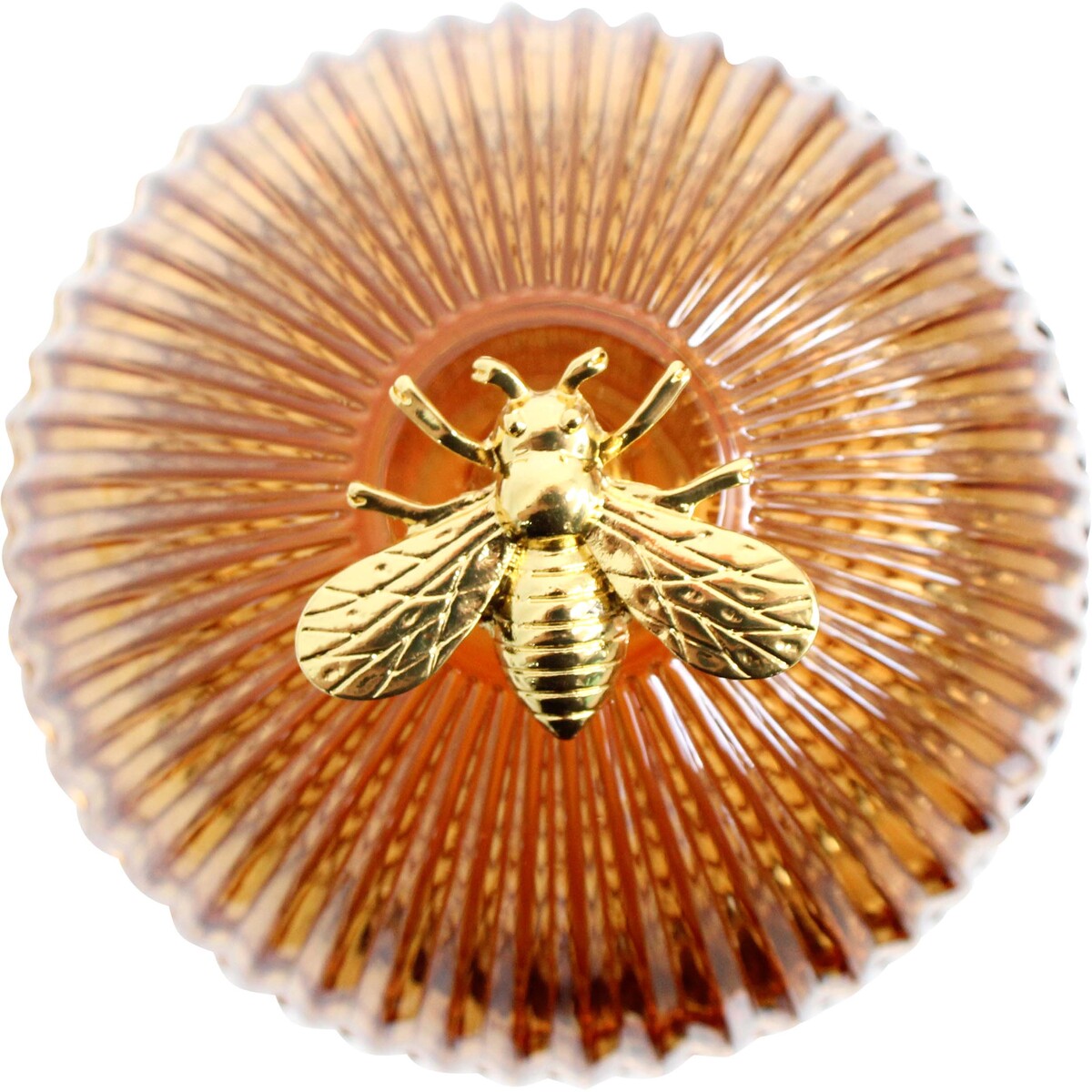 Discover the charm and elegance of the Trinket Bee Lrg Oasis, an exquisite glass accessory that offers both style and functionality to any living space or office. This masterfully crafted piece stands at a graceful 23cm tall, with a diameter of 10.5cm, perfect for adorning tabletops or shelves without overwhelming the space. The delicate, honey-hued glass sparkles with a warm glow, drawing the eye and adding a touch of inviting warmth to any room.