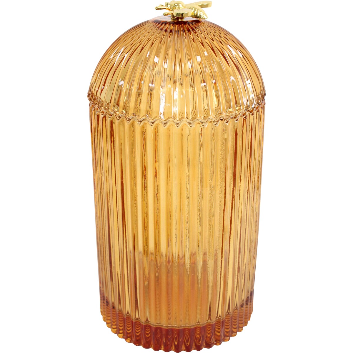 Crafted from the finest Glass', this trinket is not just an ordinary decorative item but also a versatile piece that can elevate the ambience of various decor themes, from contemporary to classic. Its ridged surface, reminiscent of a beehive, enhances its visual appeal and makes it a conversational piece that is sure to captivate your customers' guests. Its usefulness extends beyond mere decoration, as it can serve to hold jewelry, keepsakes, or as a chic organizational tool for small, everyday items.