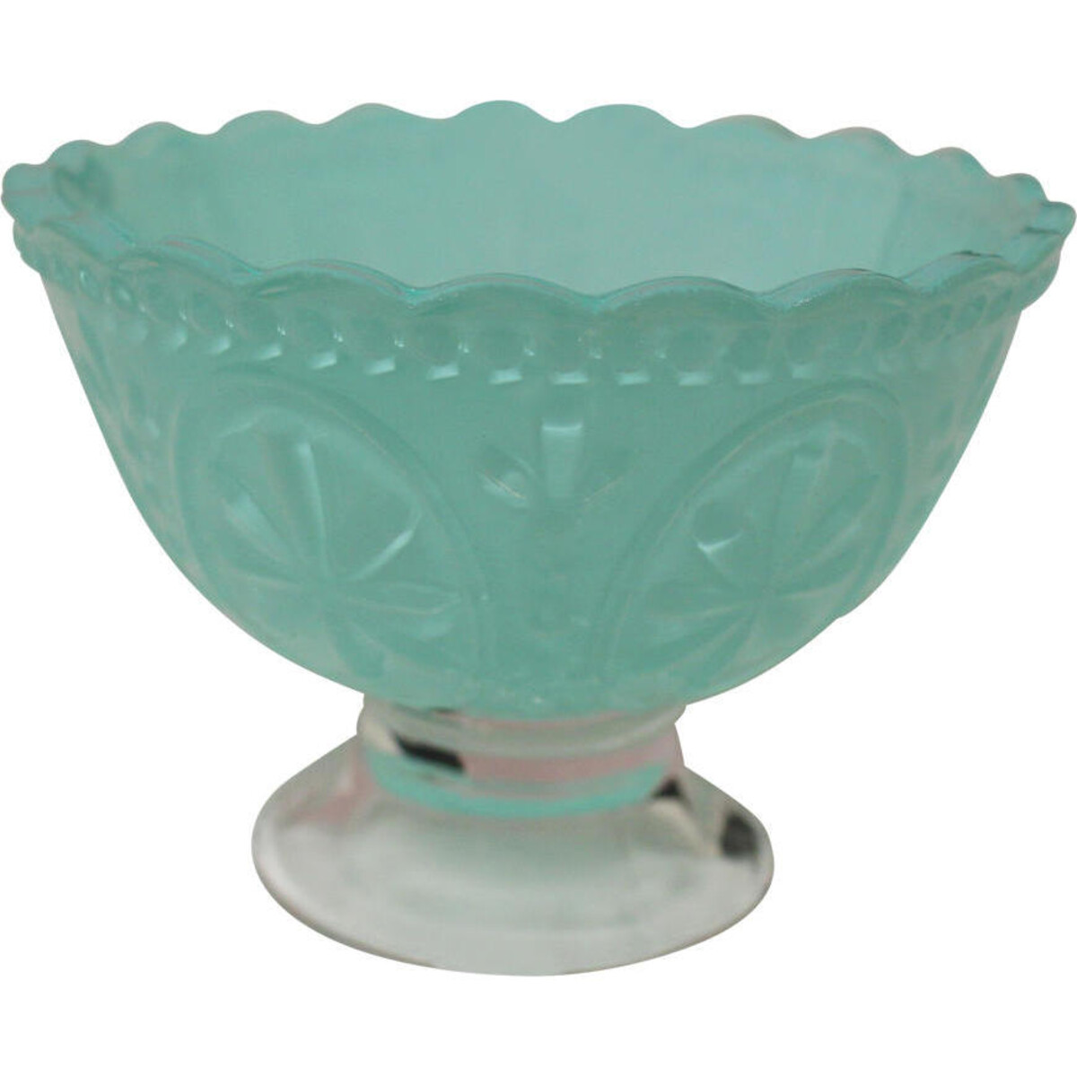Finished to great a lovely cut worked look this gorgeous teal bowl makes an impact with its fine yet solid presence. Hewed from great quality glass it sits well balanced on its tiny little lifted stand adding more charm to its graceful looks. The bowl has an edging in cut worked pattern - a detailing that lends it more class and a vintage appeal. Its heights is all of 9.5 cm and its graceful looks get swell balanced with its diameter of 7 cm. the flora pattern on its body gets balanced well with the edging as does the curved body that lends it such a pleasing look. Place nuts on the bar counter in it - use it like any other serving bowl - perhaps for frozen desserts or add it as a décor accent - you are sure to be stunned by its beauty and connect with the past.