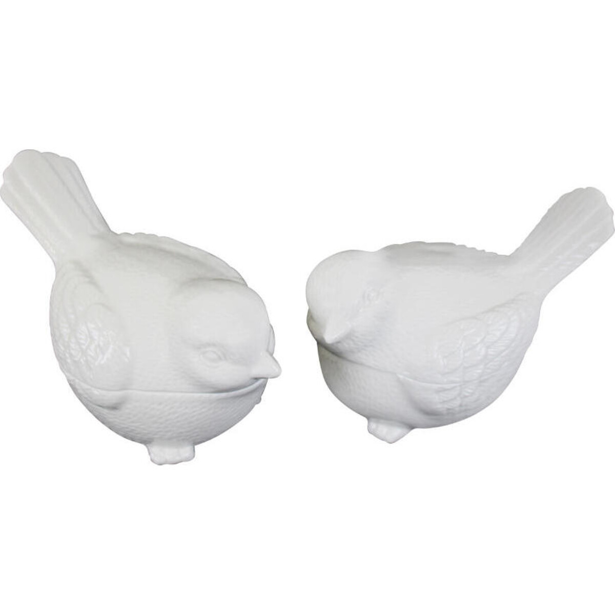The tiny birds seem quite diminutive - as if awaiting the next wind to take flight. But within their tiny little bodies, there hides a whole promise of keeping your things safe and sound. They sit guard - all of 10 cm high, their tiny little beaks, feathers and tail pert and awaiting your attention. Handcrafted with much care, the set has two birds that each open up with the removal of the upper portion to reveal small little cavity that could hold your little nuggets of excitement. You could give away trinket gifts encased in them or present it to someone whose love for trinkets makes them look for better organizational options. While idling, the birds look superb as the sit atop your dresser. The handmade features, and the beautiful glaze of ceramic making them a true artisanal accent in the space.