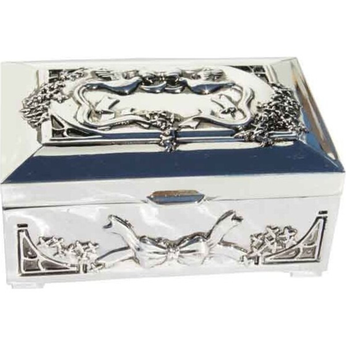 The Trinket Box - Bow Ribbon is an exquisitely brilliant jewelry box that shines like polished silver. Also, the clear and glassy facets are adorned with artistic details embossed and sculpted upon the metal surface itself.